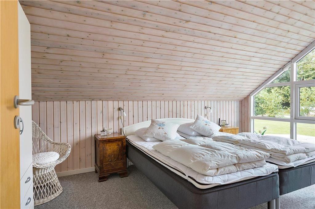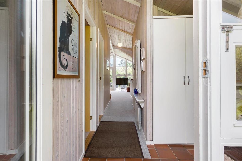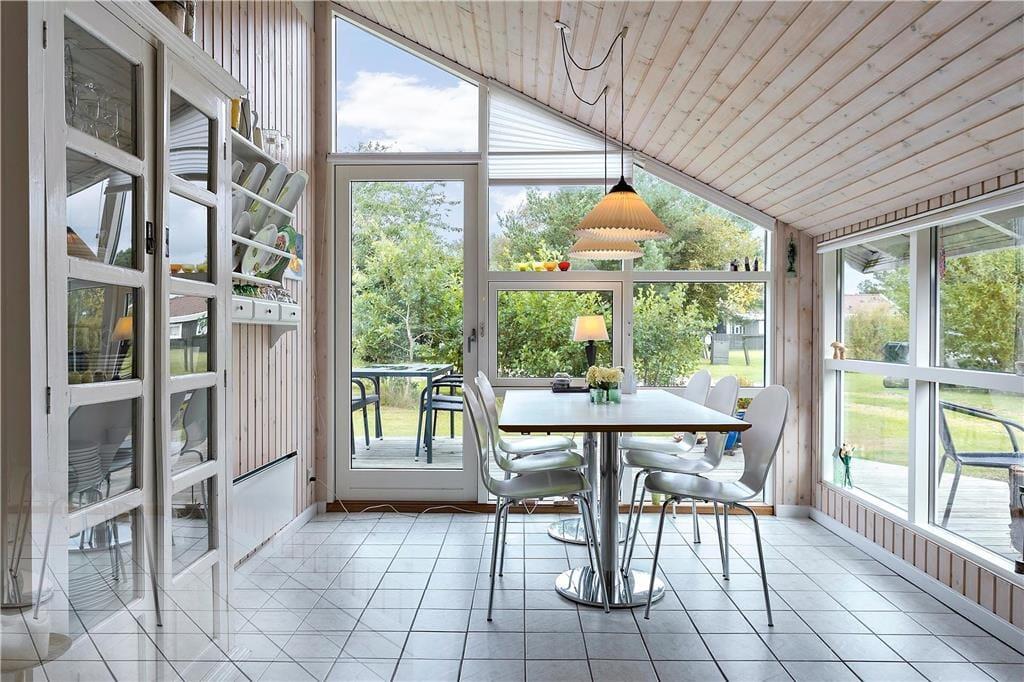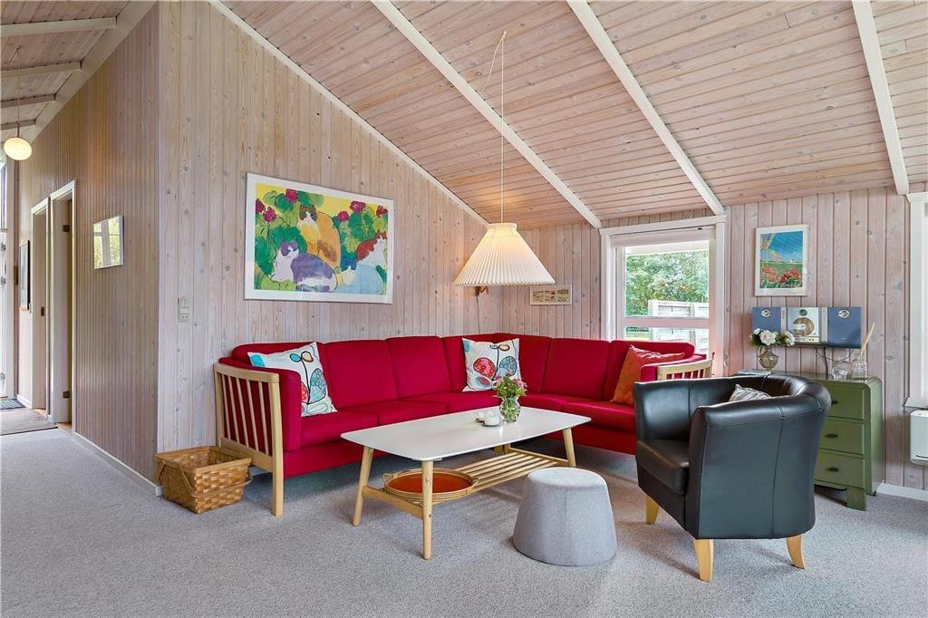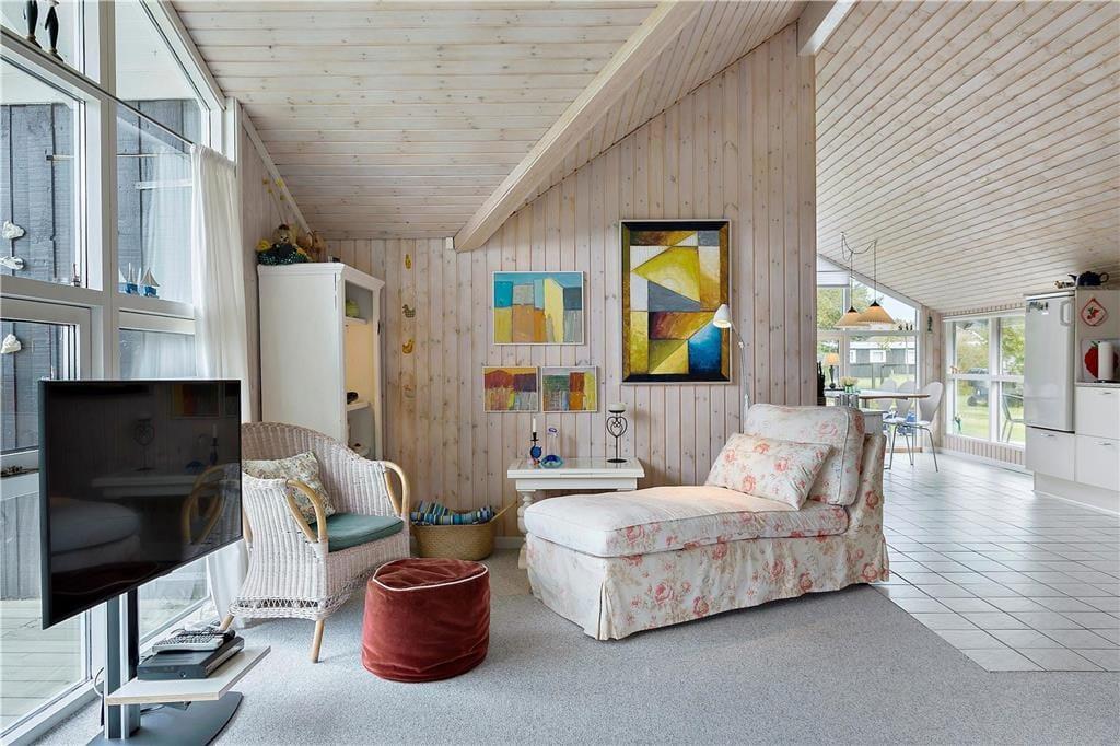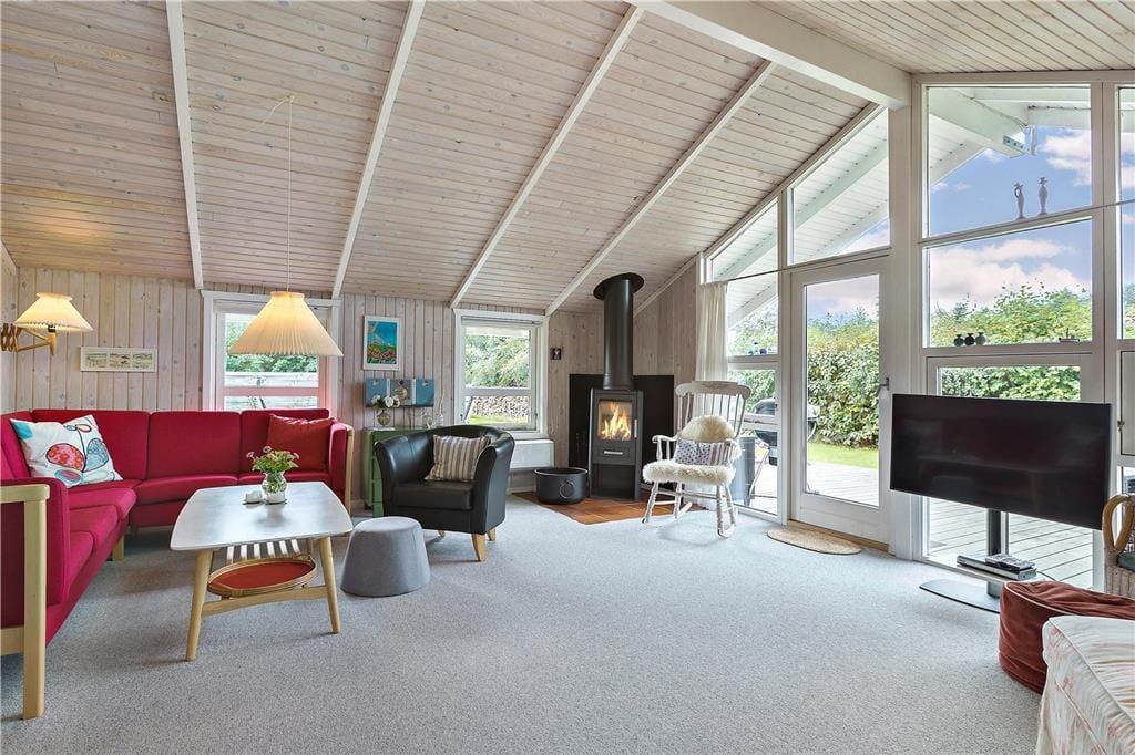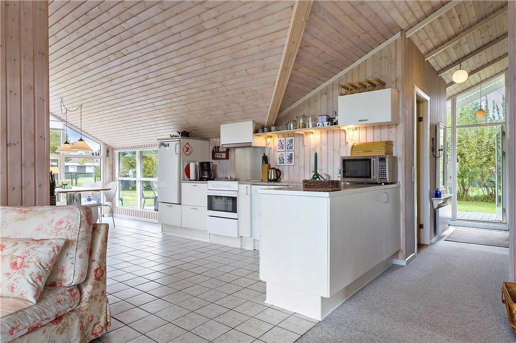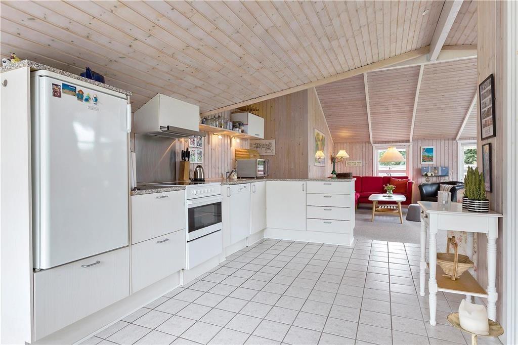 Sommerhuset byder dig velkommen med sin lyse og indbydende atmosfære. Indretningen emmer af hygge, og store vinduespartier sikrer, at dagslyset strømmer ind i stuen, hvor hele familien kan samles til afslapning og samvær. Det åbne køkken ligger i forbindelse med stuen og skaber et naturligt samlingspunkt for feriens måltider og hyggestunder. Med sine varme detaljer og rummelige opdeling er huset perfekt til både store og små, der kan nyde ferien i komfortable omgivelser.