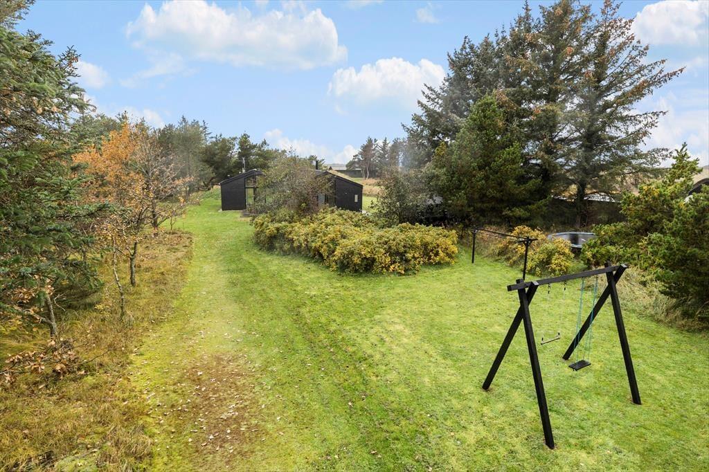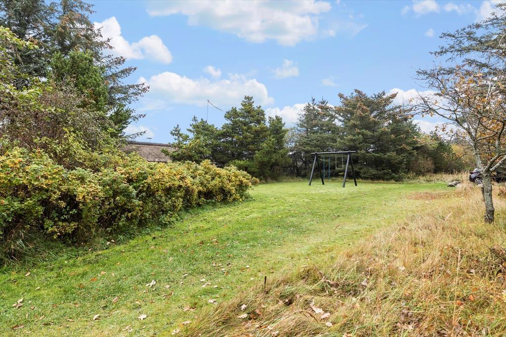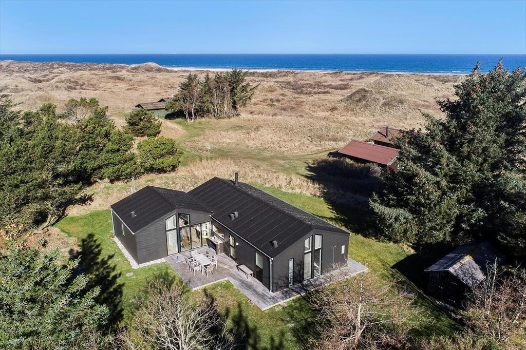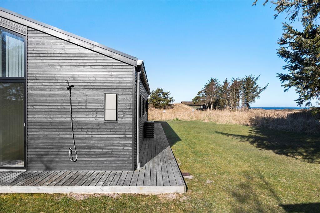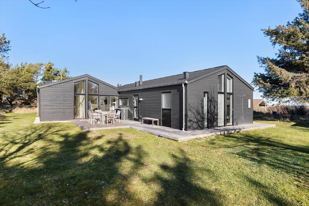 Udenfor venter et dejligt terrasseområde, hvor du kan nyde solen og udsigten til Vesterhavet. Start dagen med morgenkaffe under åben himmel, slap af i liggestolen eller inviter familien til en hyggelig grillaften. Den store græsplæne omkring huset giver plads til leg og boldspil for både store og små, og børnene kan trygt løbe rundt og lege i de rolige omgivelser. Naturen er lige uden for døren, og du kan næsten mærke havbrisen, der blander sig med den friske luft fra det smukke klitlandskab.