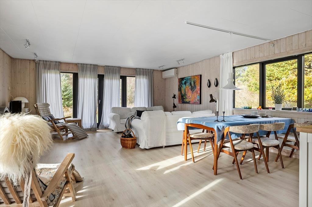 Når du træder ind i sommerhuset, bliver du straks mødt af en indbydende atmosfære. De lyse vægge og store vinduer skaber en følelse af luftighed og giver et fantastisk lysindfald i alle rum. Stuen er rummelig og indrettet med hyggelige møbler, hvor du kan samle familien til afslapning eller en god film. Det åbne køkken gør det let at lave mad og samtidig være en del af fællesskabet. Huset er perfekt for både store og små, der ønsker en ferie fyldt med komfort og hygge.