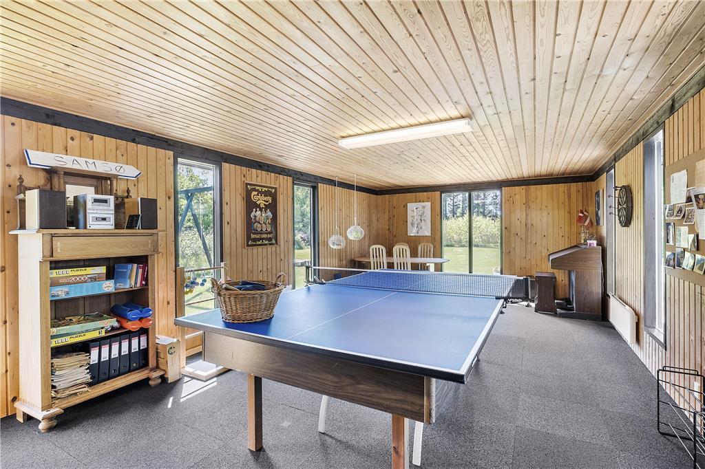 Indenfor i sommerhuset bliver du mødt af en lys og indbydende atmosfære, hvor store vinduespartier sørger for, at dagslyset strømmer ind og skaber en varm og hyggelig stemning. Stuen er rummelig og inviterer til afslapning med en god bog eller en film på sofaen, mens køkken-alrummet danner rammen om hyggelige måltider og fælles madlavning. De komfortable soveværelser gør det let at vågne op til feriedage fyldt med spændende oplevelser, og med et separat anneks kan du også tilbyde familiens yngste eller mest aktive medlemmer deres eget lille fristed fyldt med underholdning.