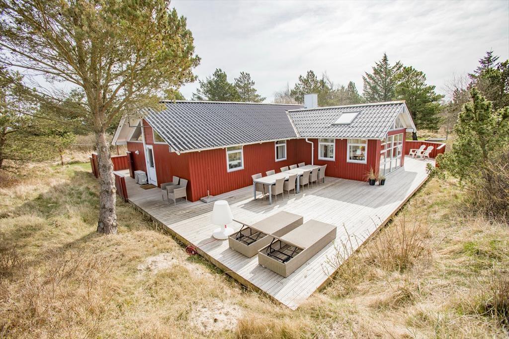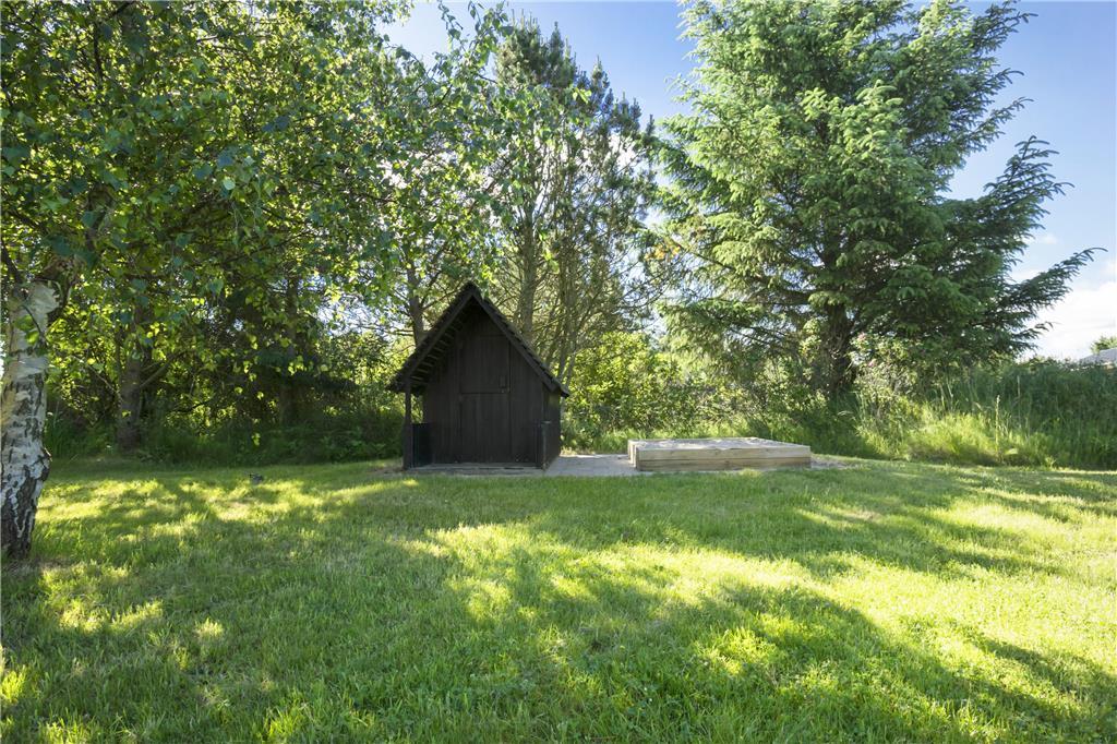 Udearealerne omkring huset er som skabt til ferieidyl. Den store terrasse inviterer til afslapning i solen, hyggelige grillmiddage og skønne stunder i rolige omgivelser. Til familiens hund er der en praktisk overdækket hundegård, hvor den kan nyde ferien i trygge rammer. Haven giver masser af plads til leg og afslapning, og du kan lade blikket hvile på de omgivende træer, mens du nyder fuglesangen.