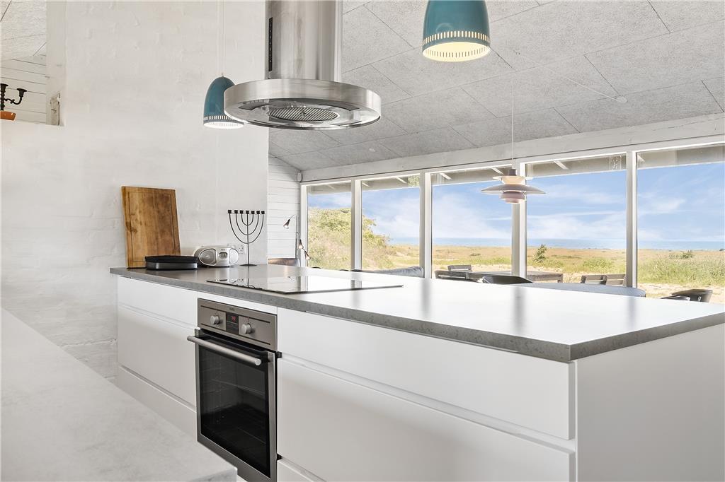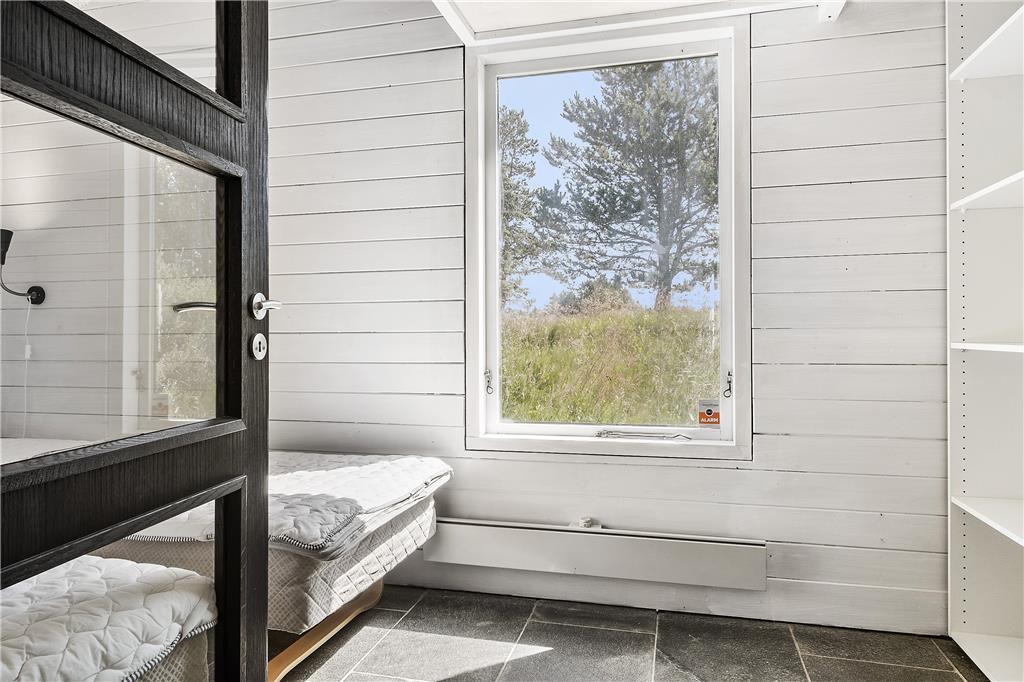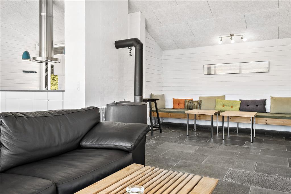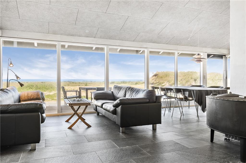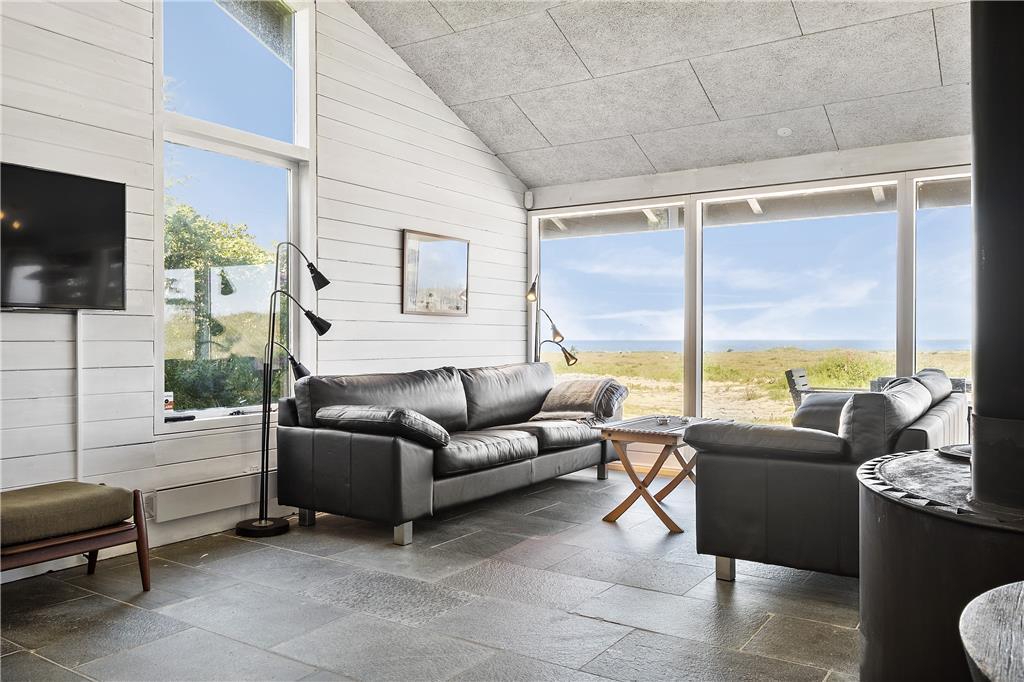 Indenfor byder sommerhuset på en lys og venlig atmosfære, der straks får dig til at føle dig hjemme. De store vinduespartier lukker både solskin og den betagende udsigt over Vesterhavet ind i opholdsstuen, hvor brændeovnen skaber en varm og hyggelig stemning på kølige dage. Stuen er i åben forbindelse med køkkenet, hvilket gør det nemt at samles om feriens måltider, mens samtalen flyder frit. Soveværelserne er indrettet med komfort for øje, så du vågner frisk og veludhvilet til endnu en dejlig feriedag.