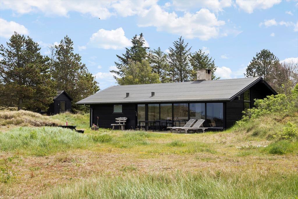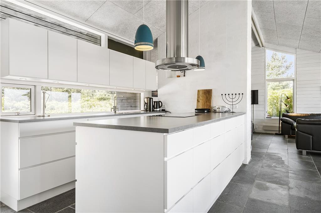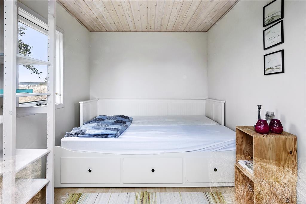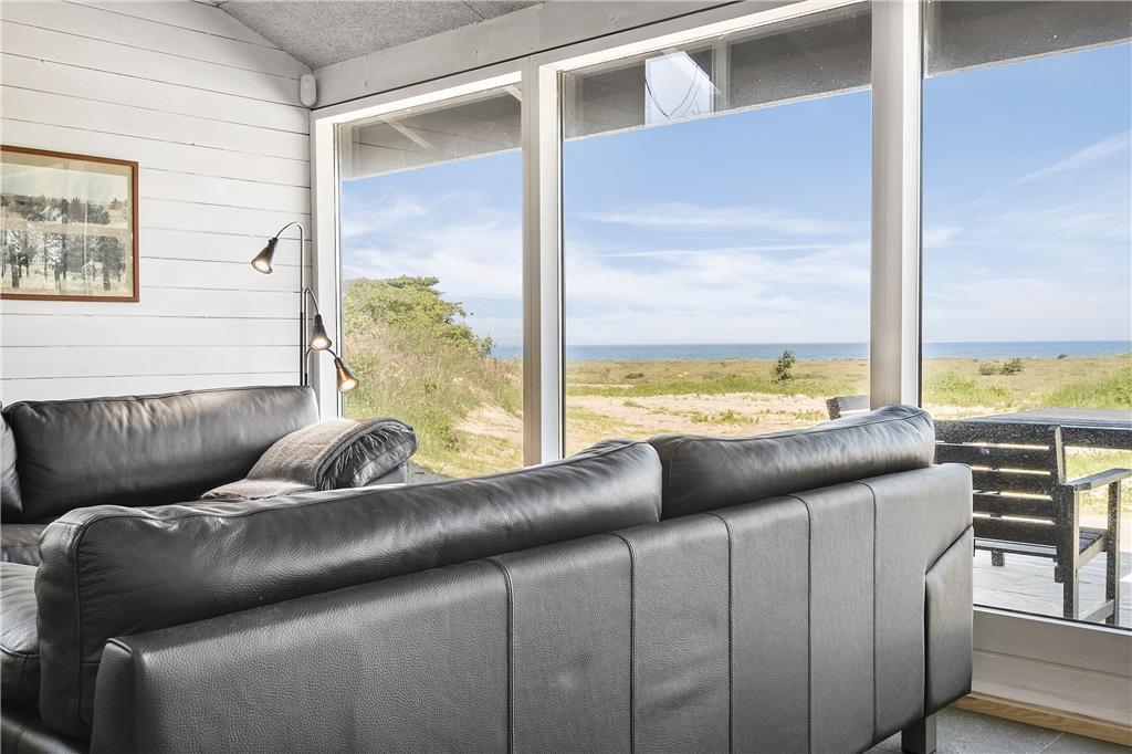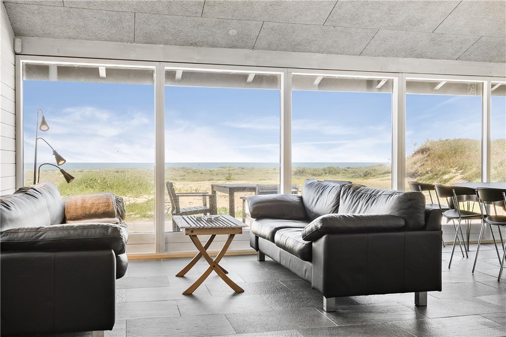 Indenfor byder sommerhuset på en lys og venlig atmosfære, der straks får dig til at føle dig hjemme. De store vinduespartier lukker både solskin og den betagende udsigt over Vesterhavet ind i opholdsstuen, hvor brændeovnen skaber en varm og hyggelig stemning på kølige dage. Stuen er i åben forbindelse med køkkenet, hvilket gør det nemt at samles om feriens måltider, mens samtalen flyder frit. Soveværelserne er indrettet med komfort for øje, så du vågner frisk og veludhvilet til endnu en dejlig feriedag.