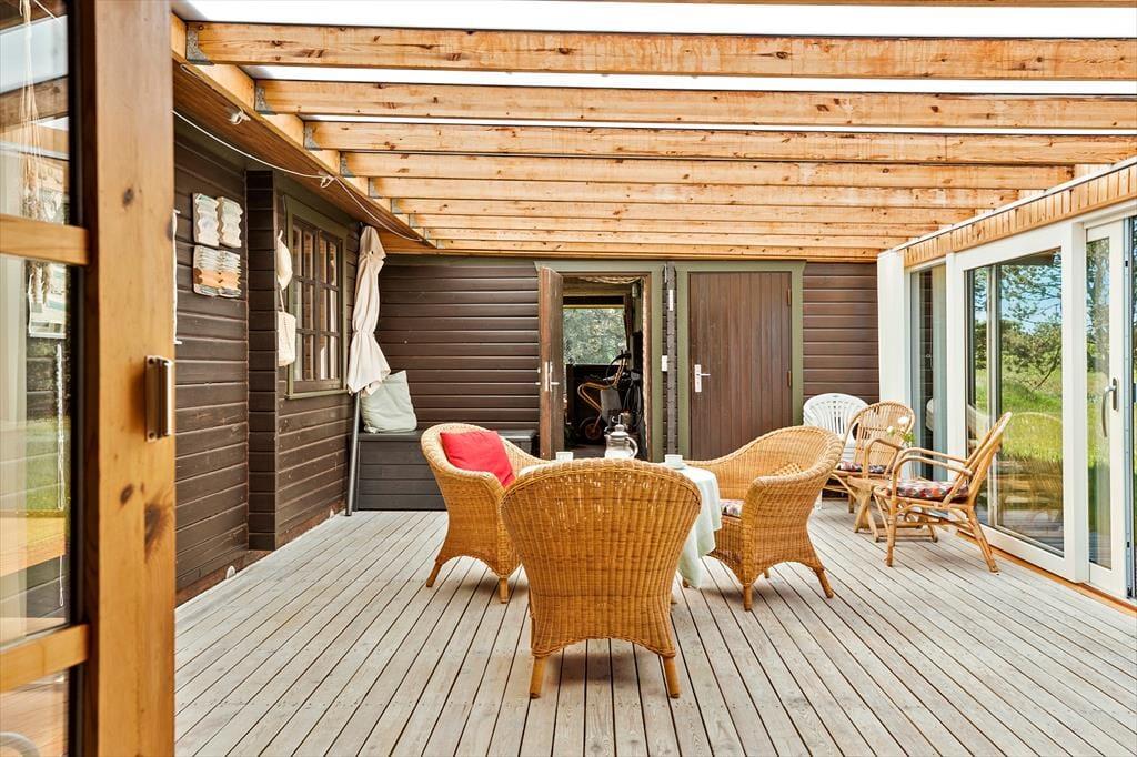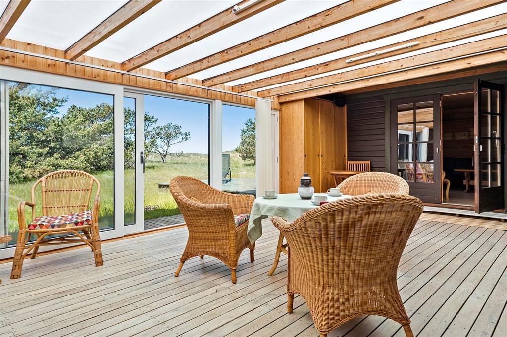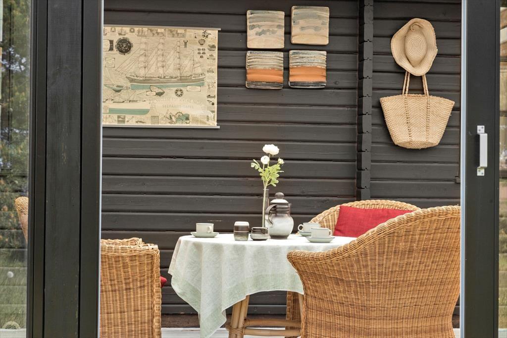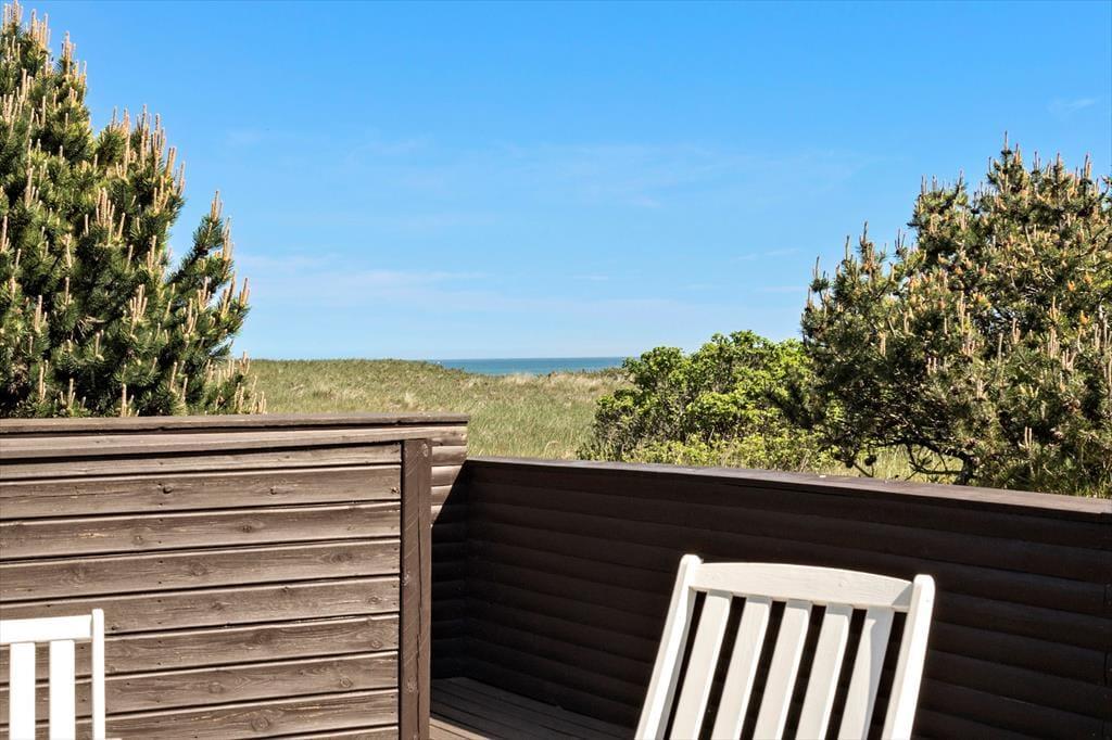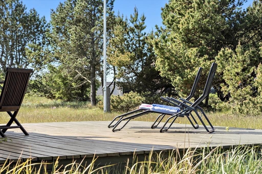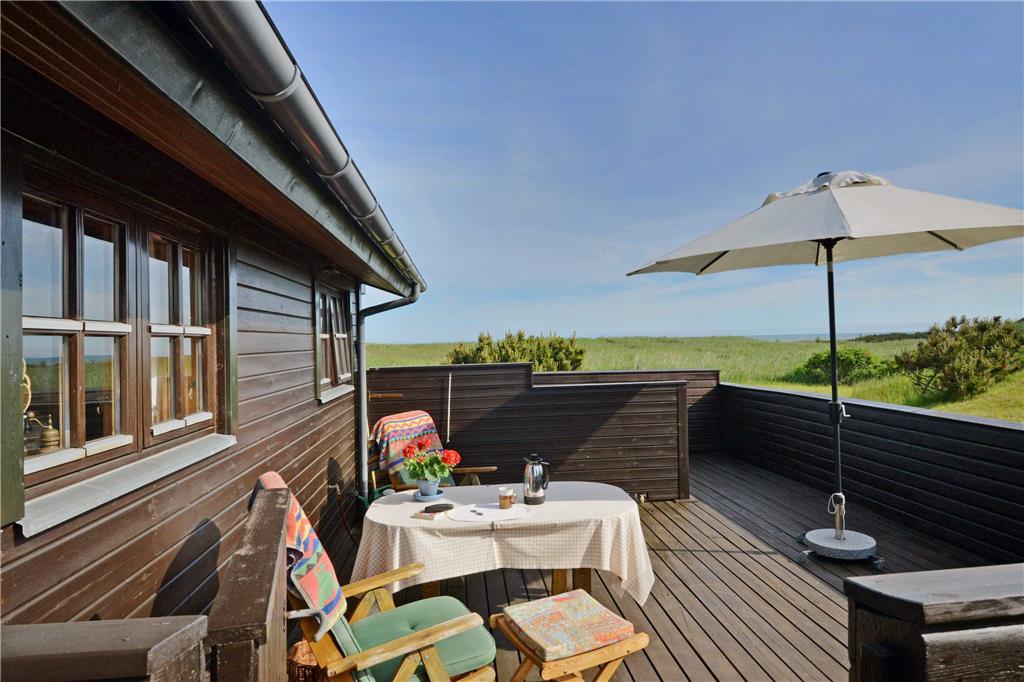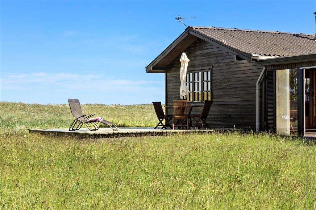 Udenfor venter en stor, åben grund, hvorfra du kan nyde den friske havluft og den betagende udsigt over landskabet. Med havet i nærheden er der rig mulighed for at tage en morgendukkert eller en lang gåtur i klitterne, hvor du kan finde muslinger og smukke sten i sandet. På terrassen kan du nyde morgenkaffen i solen eller samle familie og venner til en hyggelig grillaften under \e9n af de lange, lyse sommeraftener. Hvis du er heldig, kan du få øje på rådyr, der forsigtigt bevæger sig gennem landskabet, mens fuglene kvidrer i baggrunden.