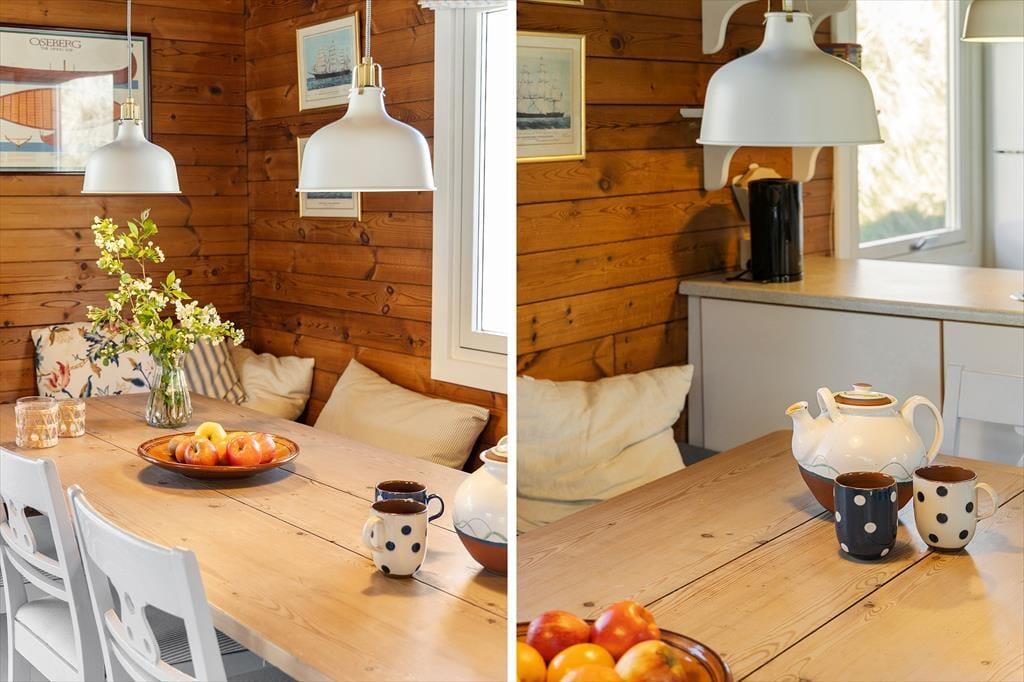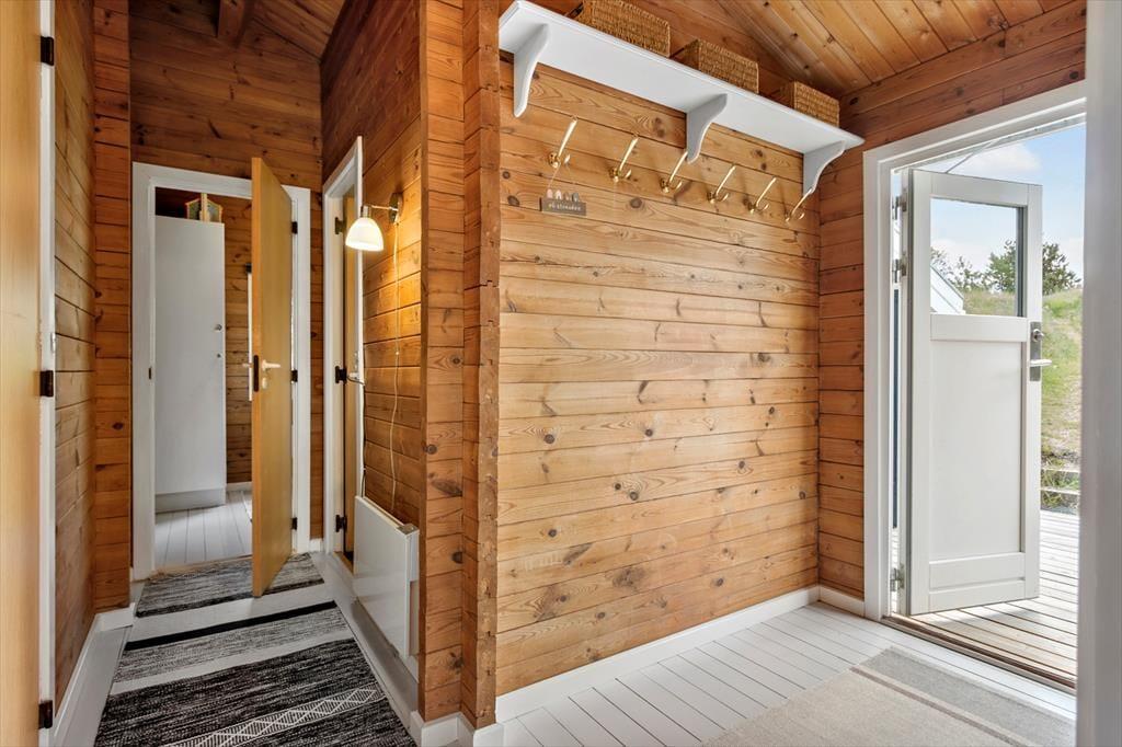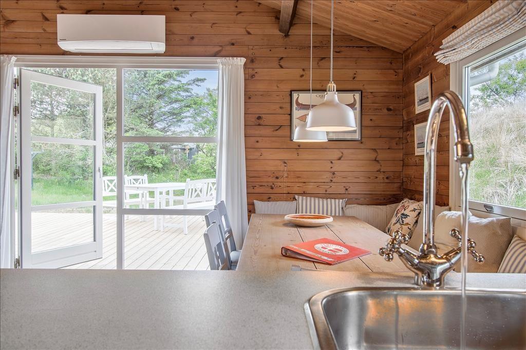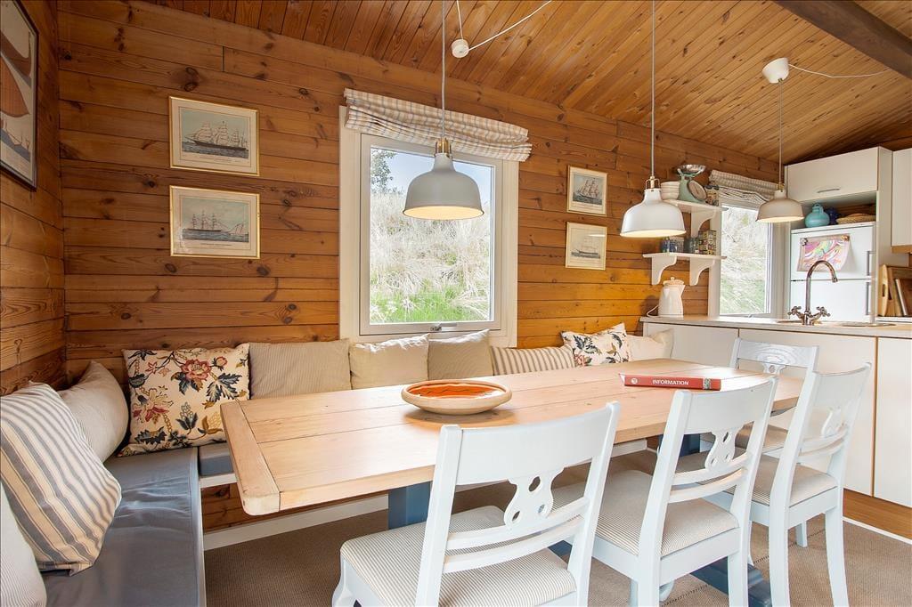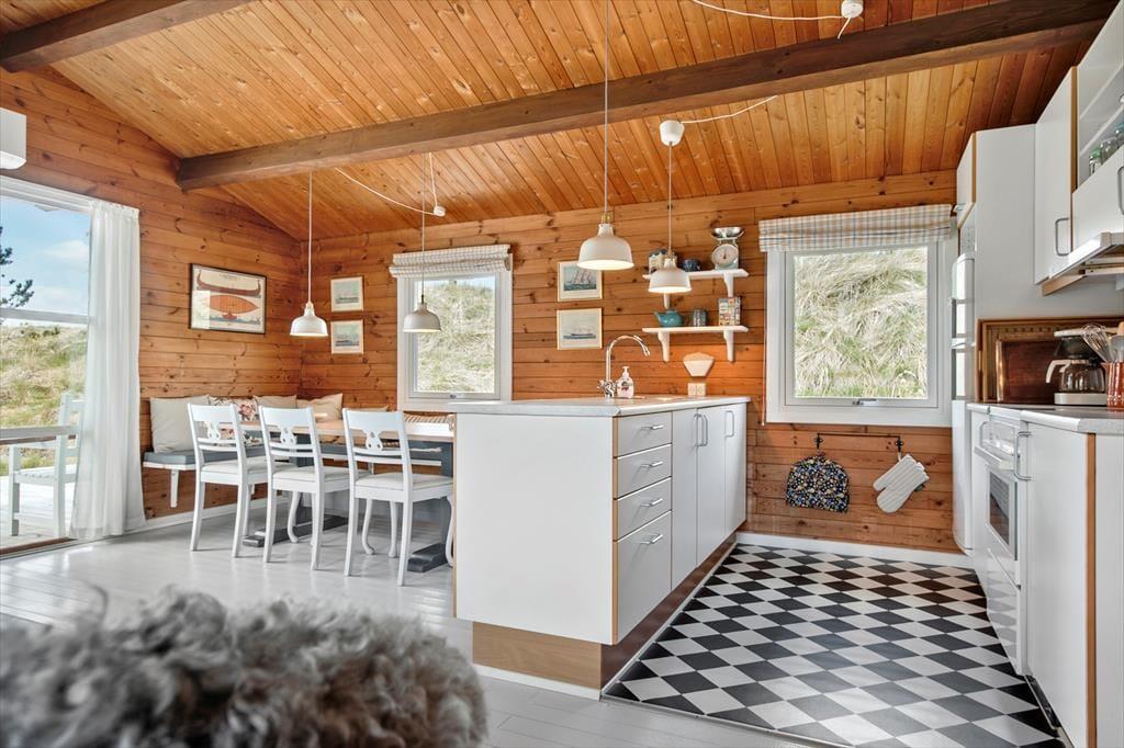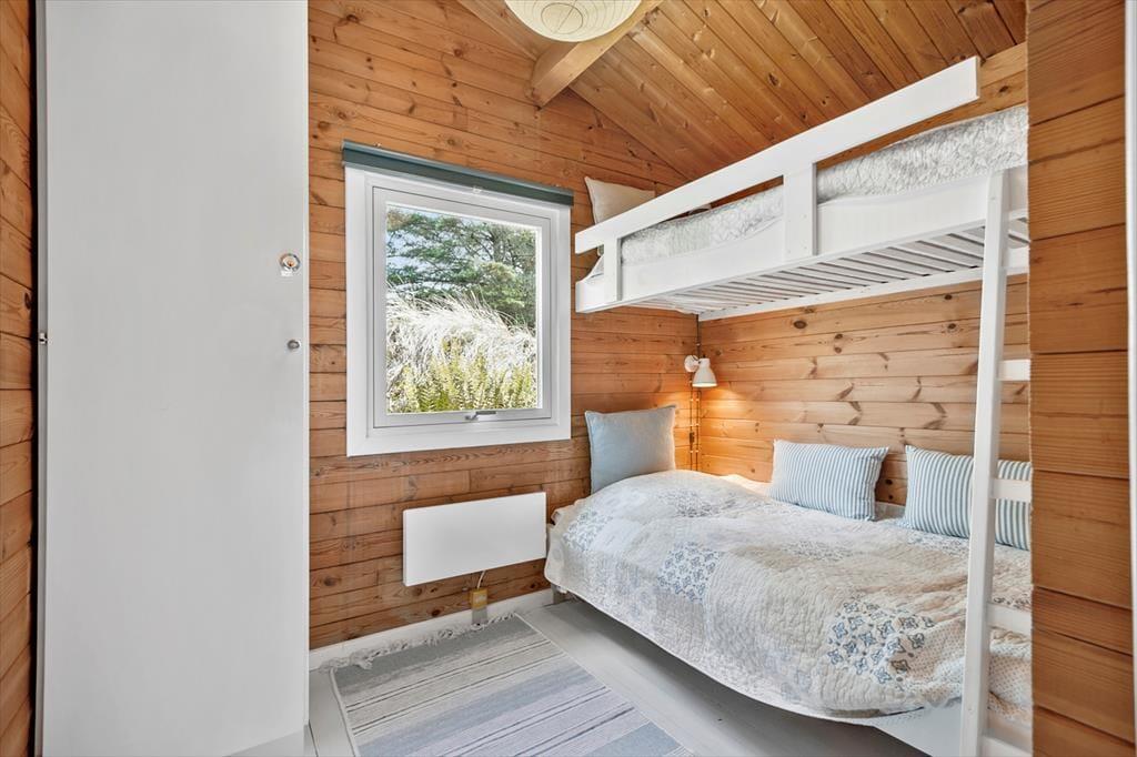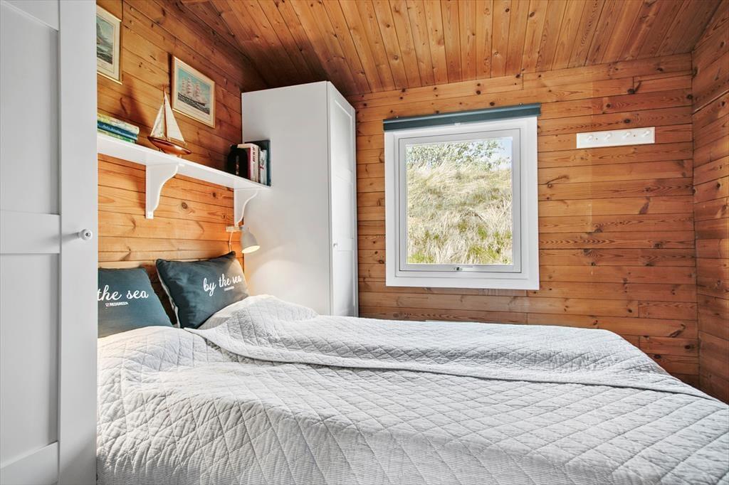 Indenfor bliver du mødt af en lys og imødekommende atmosfære, der straks indbyder til afslapning og hygge. Det rummelige opholdsrum, hvor stue og køkken er integreret, giver plads til, at familien kan samles om dagens måltider eller nyde aftener med brætspil og hyggesnak foran de store vinduer, som giver udsyn til naturen udenfor. Soveværelserne emmer af ro og komfort, så du kan vågne udhvilet og klar til dagens oplevelser.