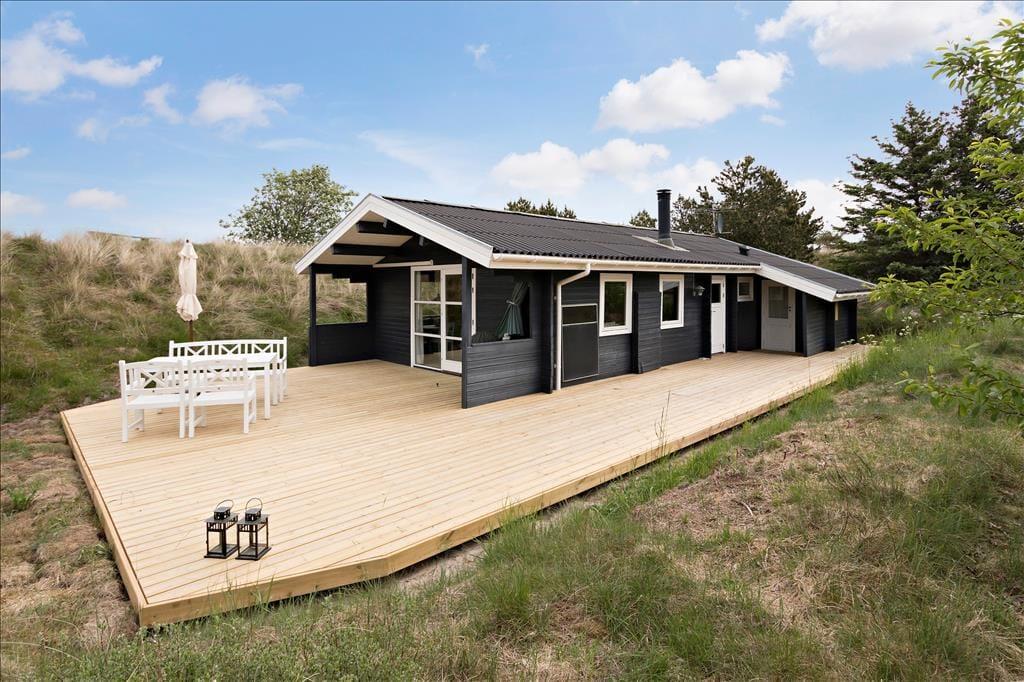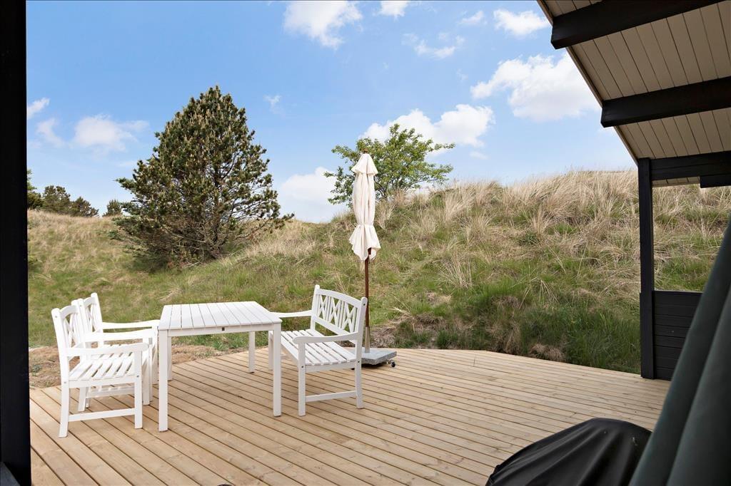 Udeområderne er en oase af fred og naturskønhed. Sommerhuset har en stor terrasse, hvor du kan nyde morgenkaffen, en god bog i liggestolen eller grille en lækker middag under åben himmel. Den omkringliggende naturgrund er rig på dyreliv – måske spotter du en hare eller et rådyr, mens du slapper af. For børnene er der rig mulighed for leg og udforskning af de store arealer, mens resten af familien nyder de idylliske omgivelser.