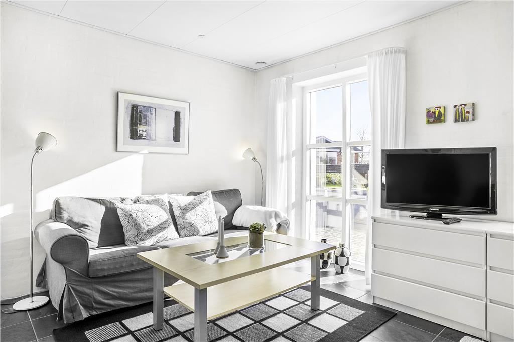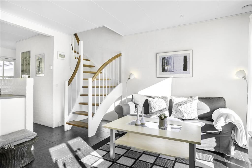 Inde i lejligheden venter en lys og indbydende atmosfære, der straks får dig til at føle dig hjemme. Boligens to etager skaber en rar og rummelig fordeling, hvor stue og køkken smelter sammen i en praktisk og hyggelig enhed. Her er der plads til at samle familien over måltider og snakke om dagens oplevelser. Ovenpå finder du soveværelserne, der er skabt til afslapning og gode nætter, så du kan vågne veludhvilet og klar til nye eventyr. Uanset om du tager plads i sofaen med en god bog eller forbereder en kop kaffe i køkkenet, vil du mærke roen brede sig.