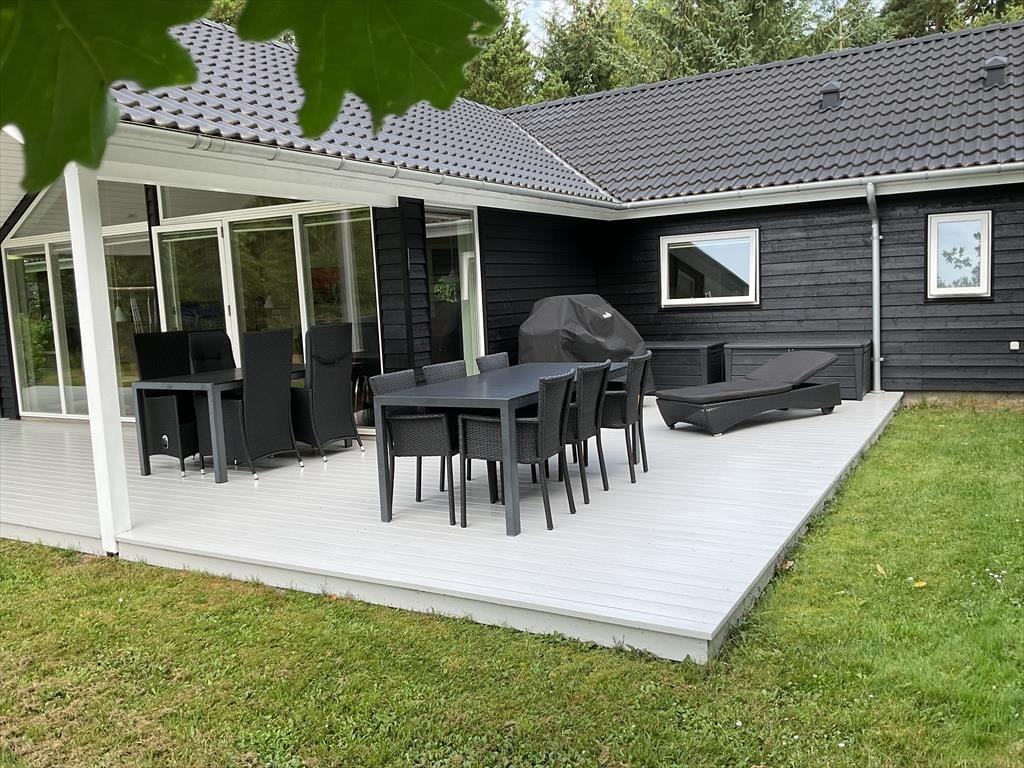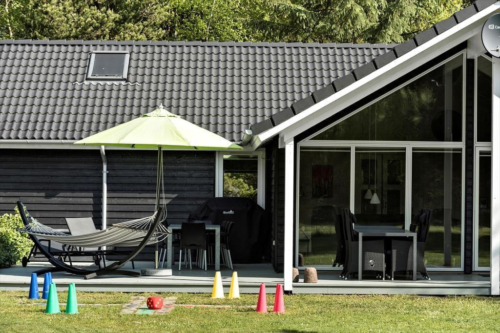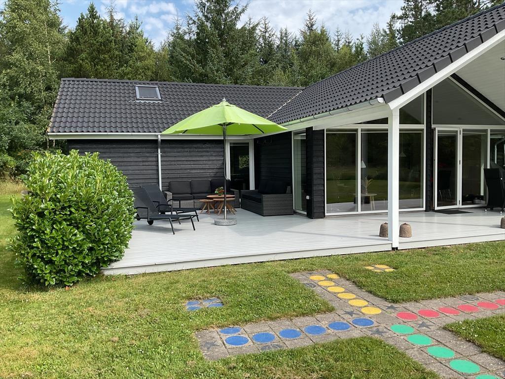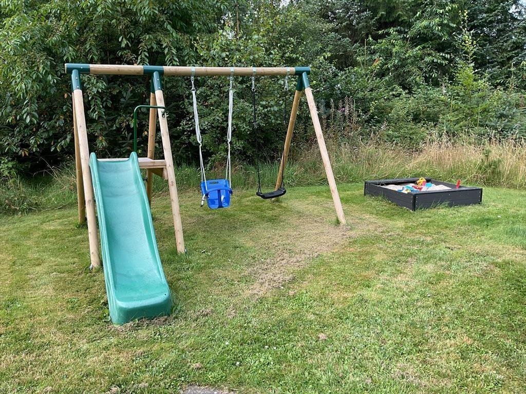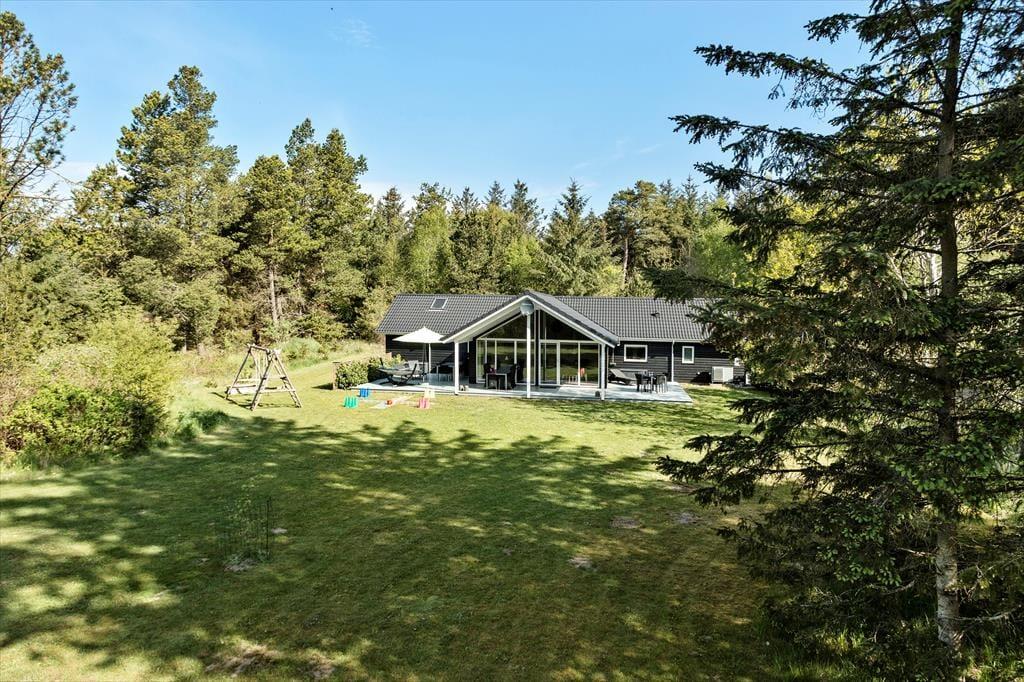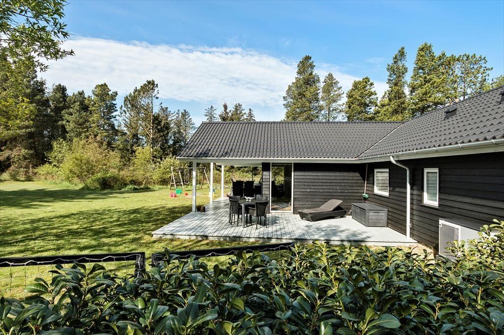 Sommerhuset er omgivet af en stor grund, der er perfekt til leg og boldspil. Plænen giver masser af plads til både store og små, der vil boltre sig i det fri. De dejlige terrasseområder er ideelle til afslapning og udendørs måltider, og her kan du nyde de lyse sommeraftener med familien omkring grillen. Husets rolige beliggenhed giver desuden en særlig mulighed for at finde ro og fordybelse midt i naturens fredfyldte omgivelser.