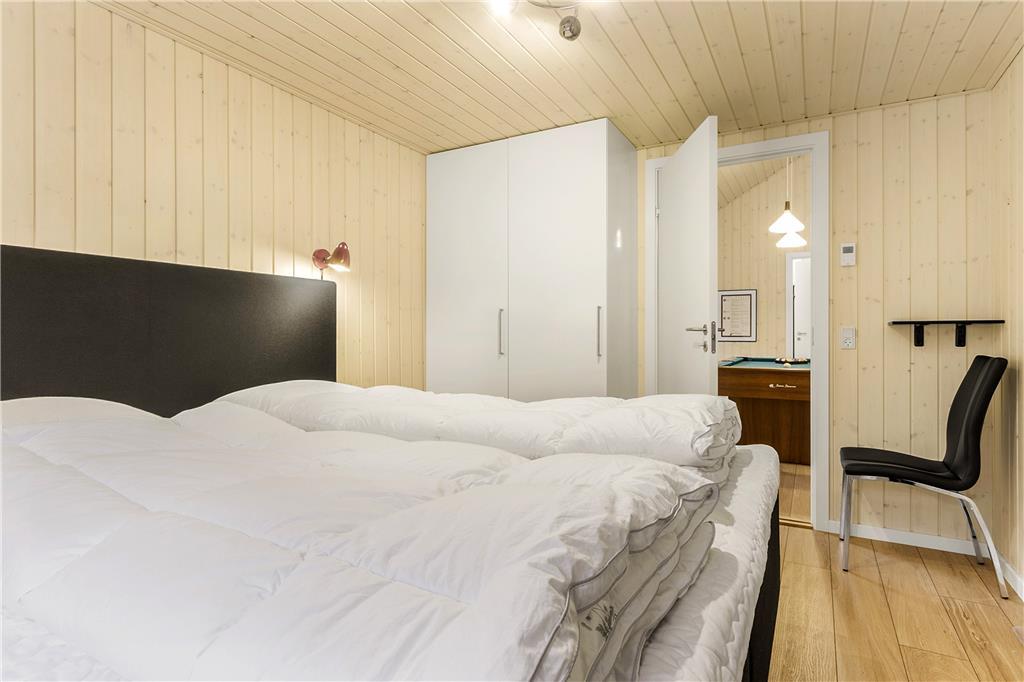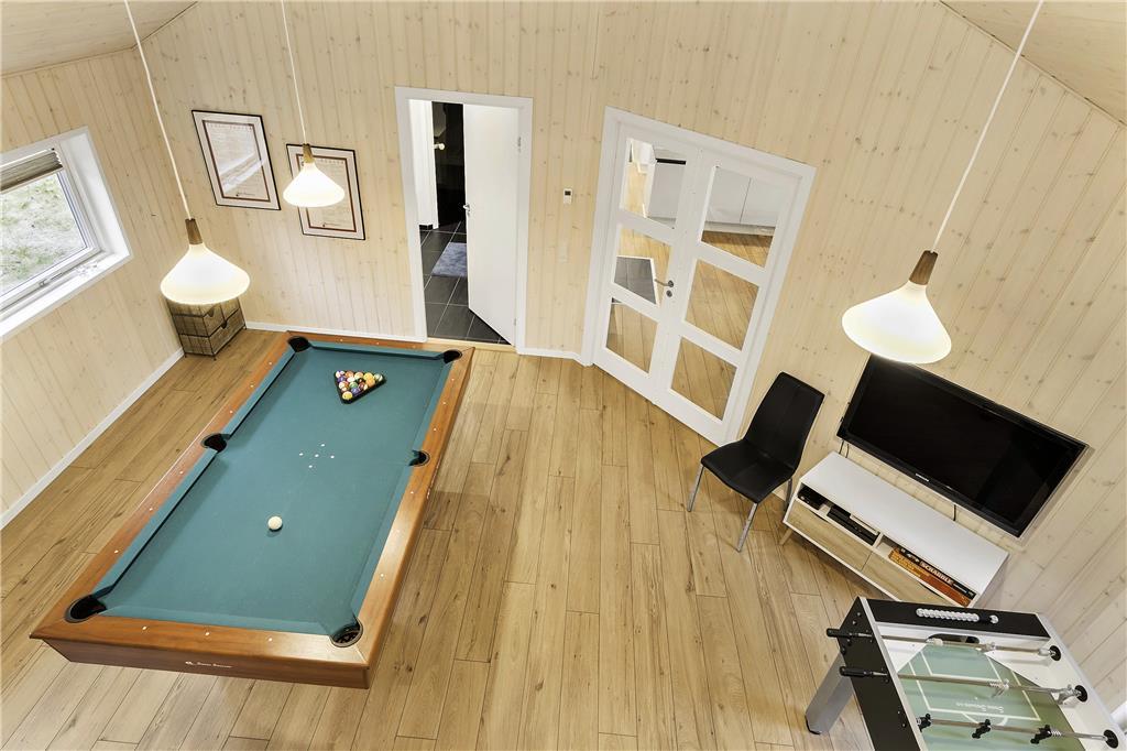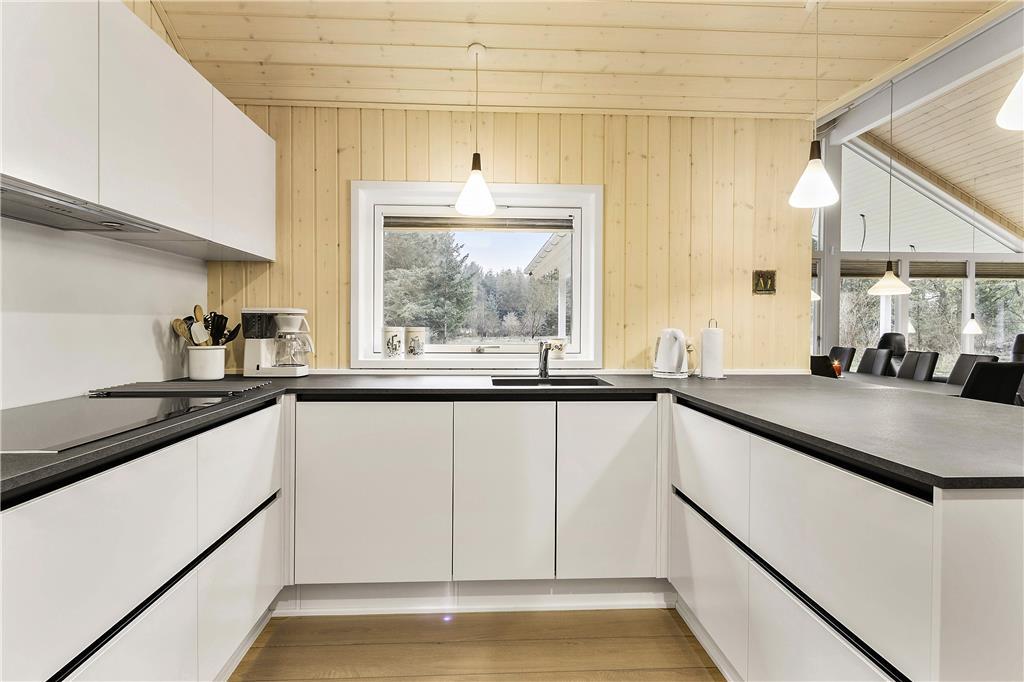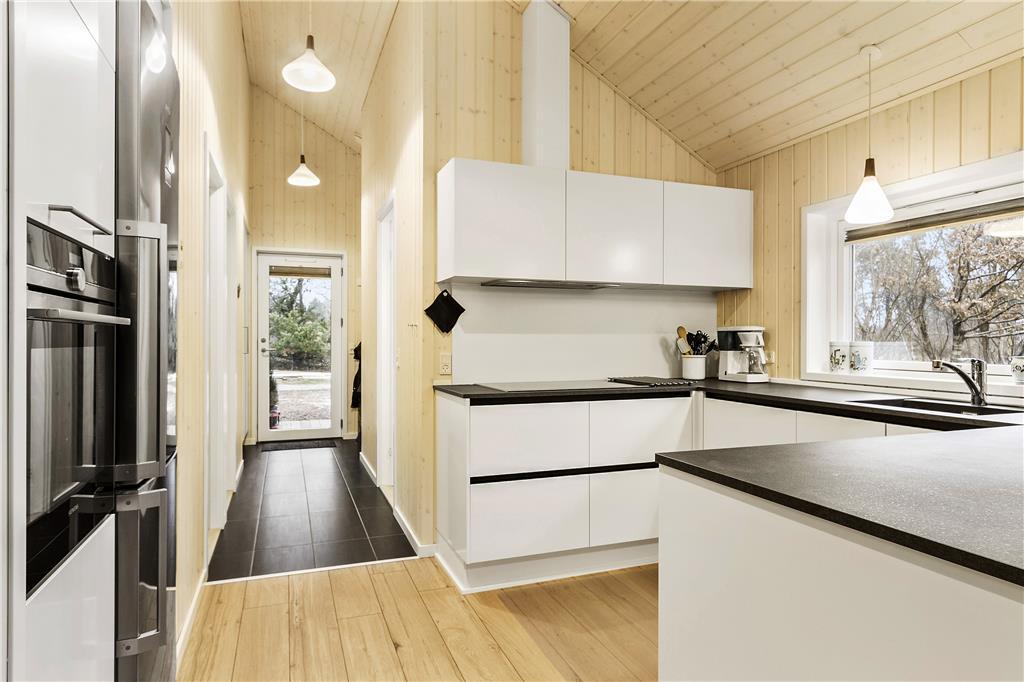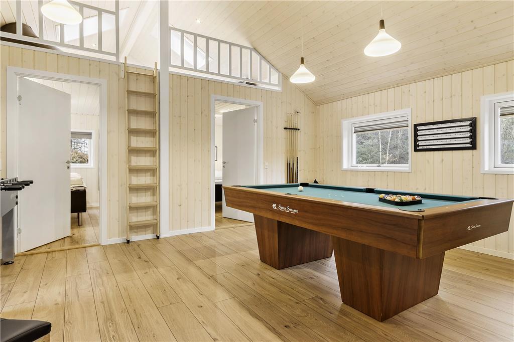 Dette rummelige sommerhus er perfekt til dig, der gerne vil samle hele familien eller en gruppe venner under samme tag. Indretningen er lys og moderne med god plads til samvær og aktiviteter. Husets hjerte er det store opholdsområde med åbent køkken og stue, hvor alle kan være sammen – uanset om der laves mad, spilles spil eller hygges i sofaen. Her er der skabt rammer for mange hyggelige stunder, og med flere aktivitetsmuligheder i huset er der altid noget at give sig til, selv hvis vejret indbyder til en dag indendørs.