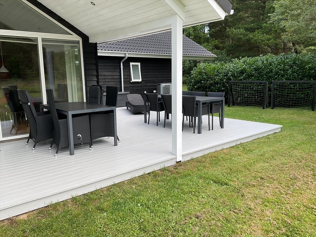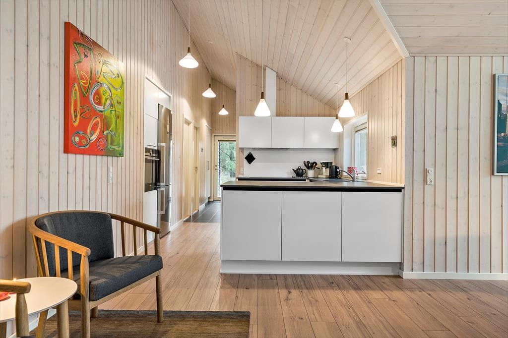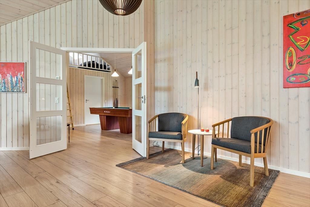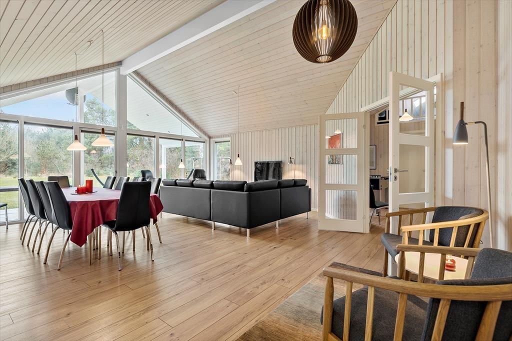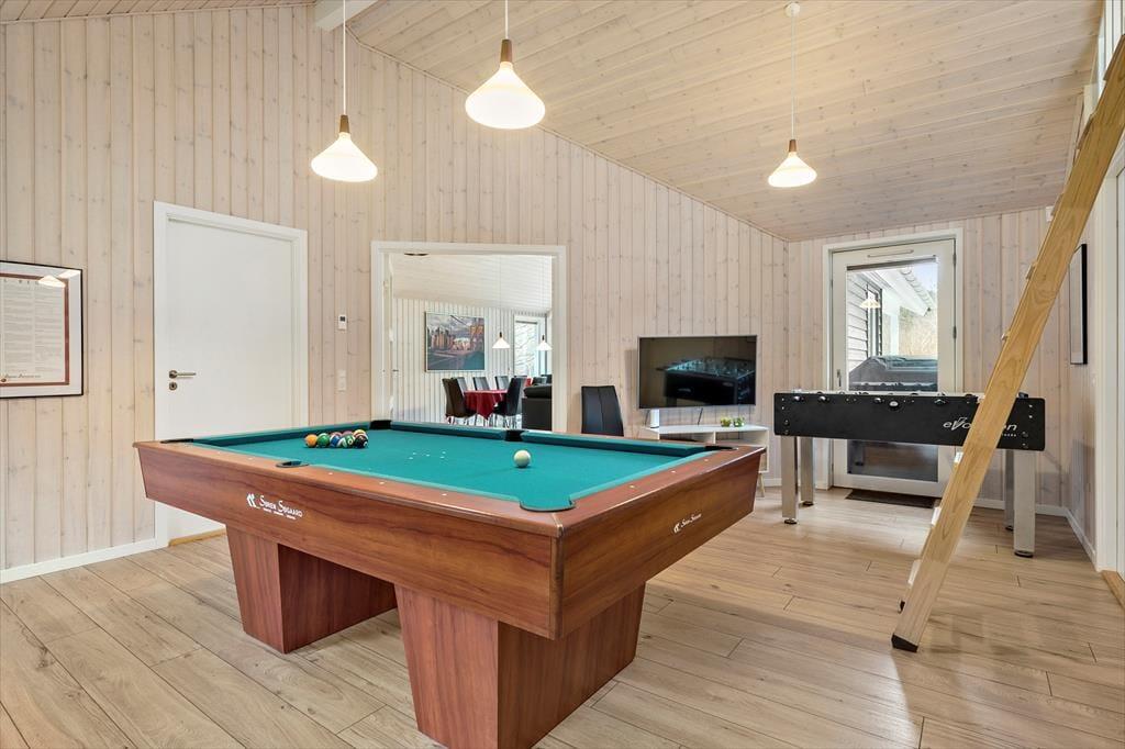 Dette rummelige sommerhus er perfekt til dig, der gerne vil samle hele familien eller en gruppe venner under samme tag. Indretningen er lys og moderne med god plads til samvær og aktiviteter. Husets hjerte er det store opholdsområde med åbent køkken og stue, hvor alle kan være sammen – uanset om der laves mad, spilles spil eller hygges i sofaen. Her er der skabt rammer for mange hyggelige stunder, og med flere aktivitetsmuligheder i huset er der altid noget at give sig til, selv hvis vejret indbyder til en dag indendørs.
