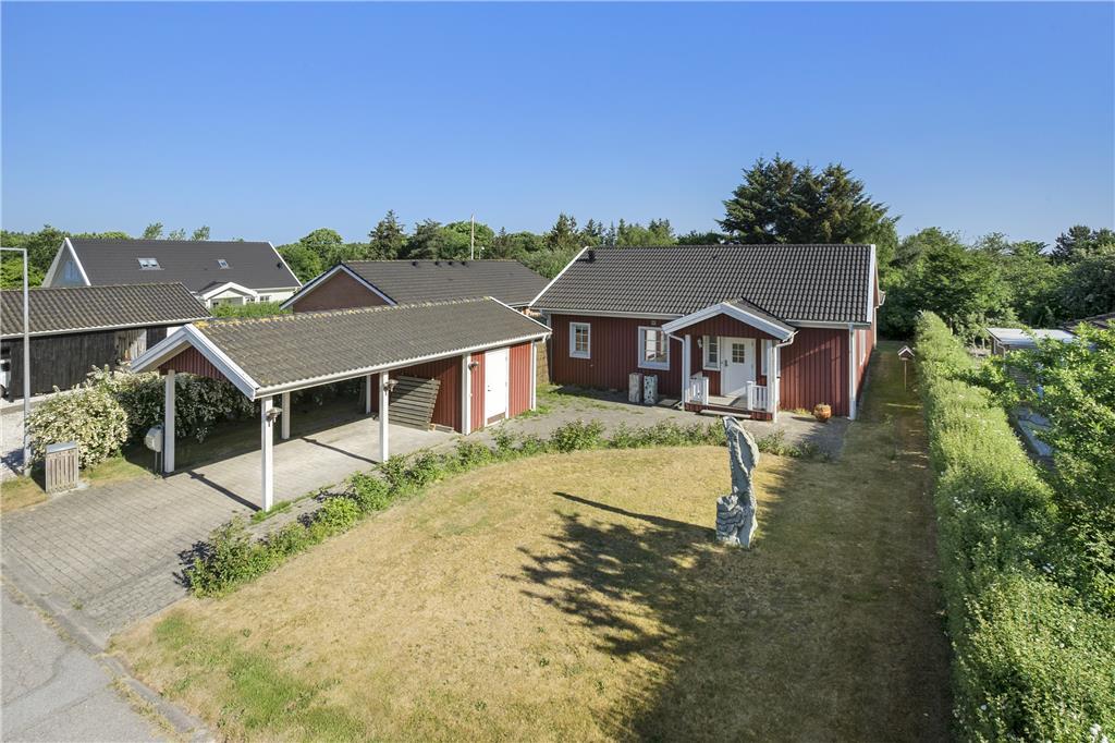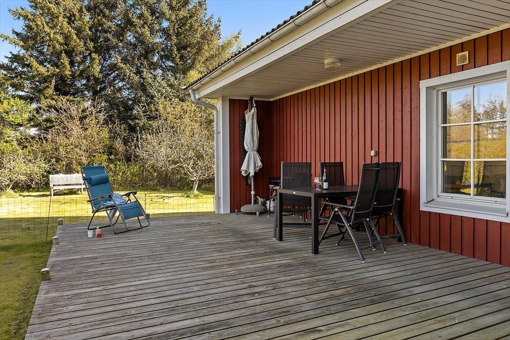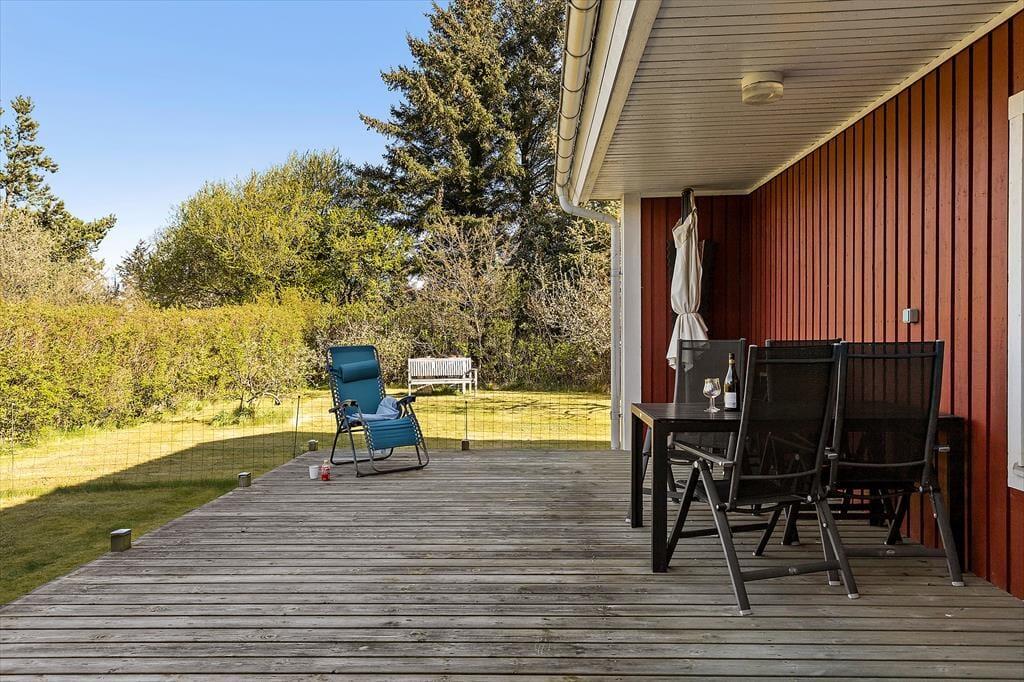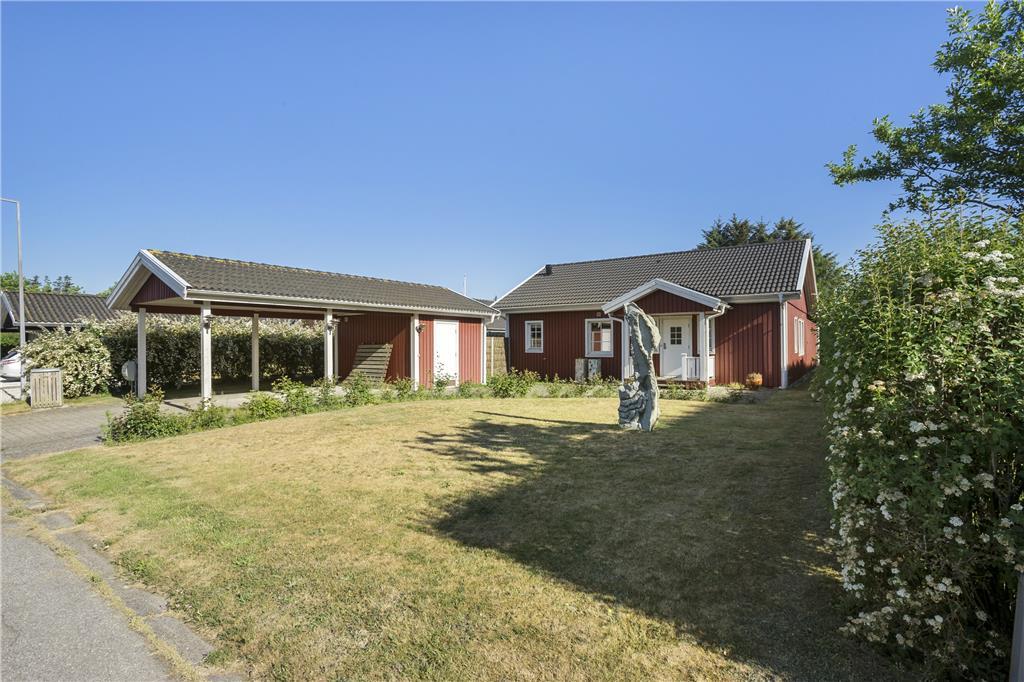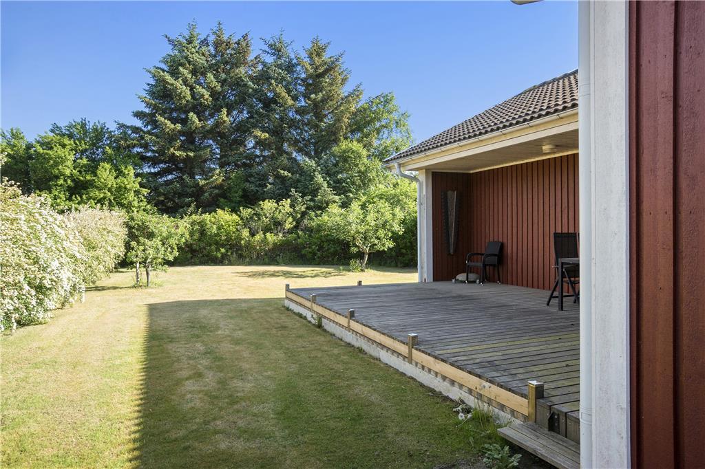 Sommerhuset ligger på en skøn, lukket grund, hvor du kan nyde udelivet i trygge og rolige omgivelser. Den store plæne giver masser af muligheder for leg og boldspil, og terrassen indbyder til afslapning i solen eller hyggelige grillaftener med familien. Haven er afskærmet, så du kan nyde din ferie i fred og ro, mens børnene leger frit. Hvis du medbringer din hund, kan den også glæde sig til at udforske haven og de nærliggende naturområder.