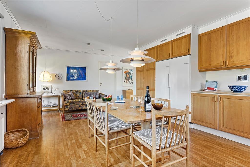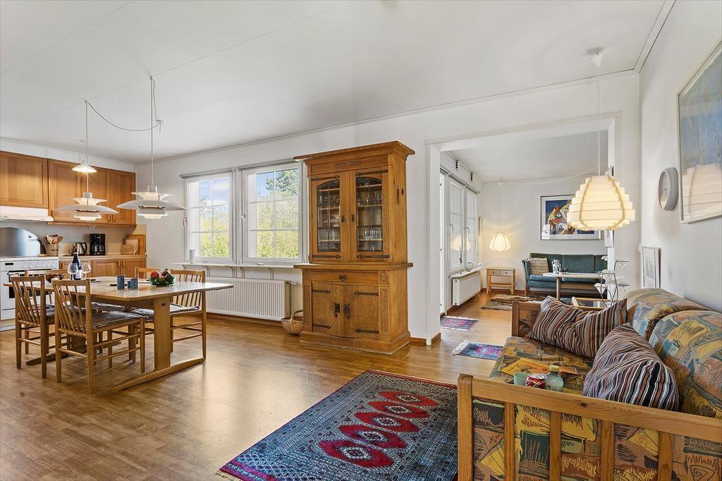 Træd indenfor i dette hyggelige og funktionelle sommerhus, hvor rummelighed og lysindfald er i fokus. Huset har et stort køkken-alrum, der fungerer som hjemmets hjerte, hvor alle kan samles til madlavning, måltider og hyggelige stunder i sofahjørnet. De store vinduer lukker masser af naturligt lys ind og giver en smuk udsigt til haven. Indretningen er lys og indbydende med en afslappet atmosfære, der gør det nemt at komme i feriestemning.