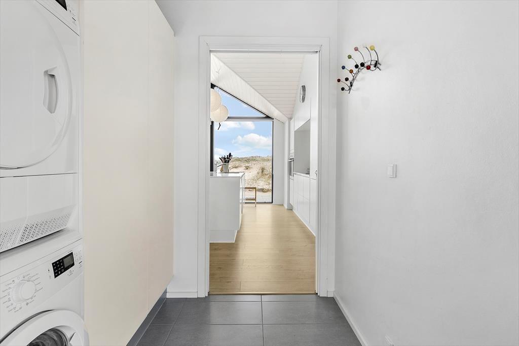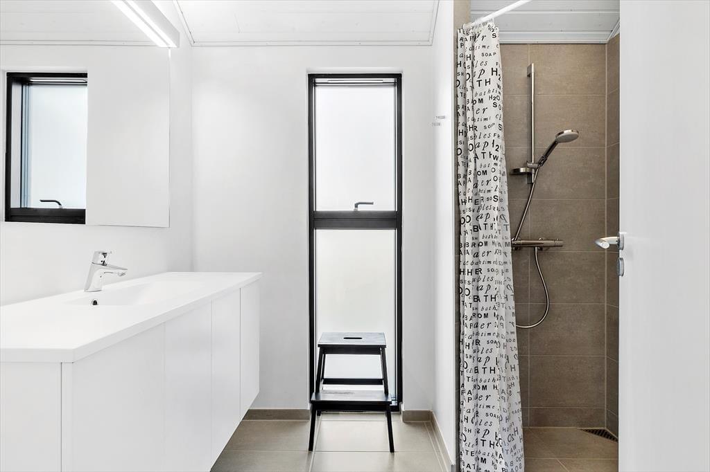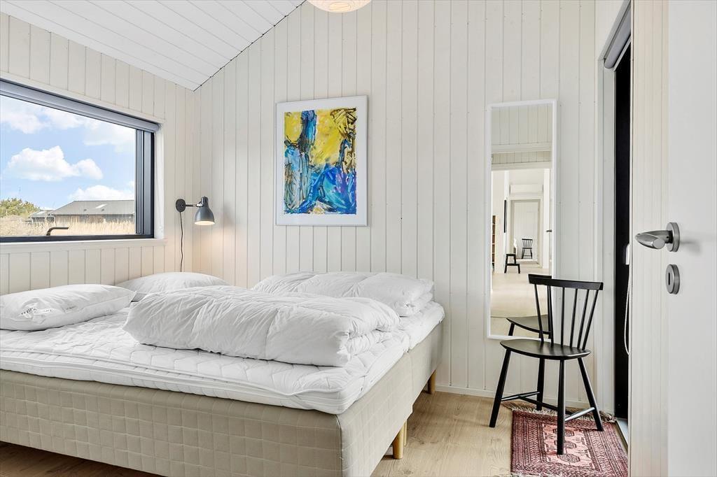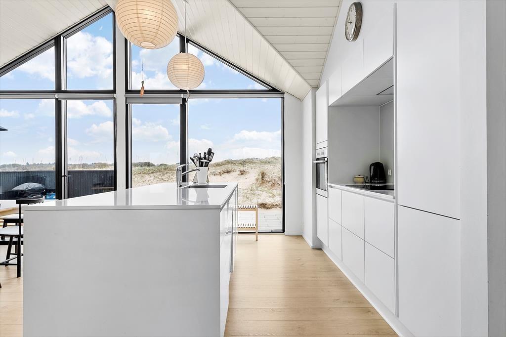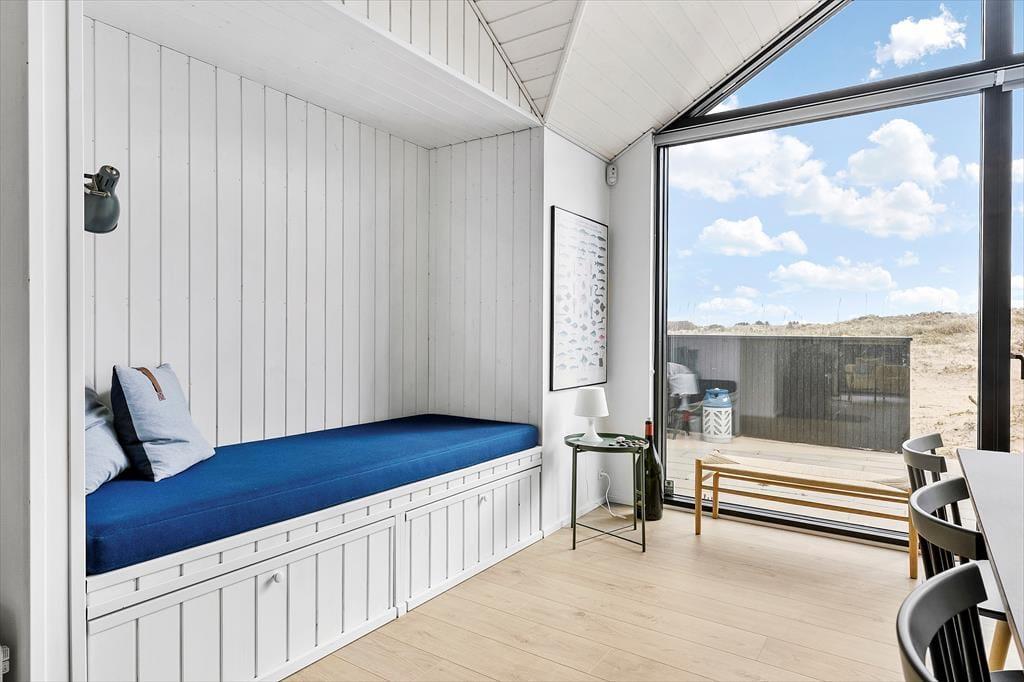 Indenfor møder du en lys og moderne indretning, hvor atmosfæren straks får skuldrene til at sænke sig. Stuen er samlingspunktet, hvor store vinduespartier lukker lyset ind og skaber en venlig stemning fra morgen til aften. Her kan I samles om brætspil ved spisebordet eller lade snakken flyde, mens maden bliver tilberedt i det åbne køkken. Om aftenen er sofaen et oplagt sted at krybe sammen med en god bog eller en film, mens duften af nybrygget kaffe breder sig. Planløsningen gør det nemt at være flere afsted sammen – uanset om I er to familier eller en gruppe gode venner, som drømmer om at dele ferieminder i et hjemligt sommerhusmiljø.