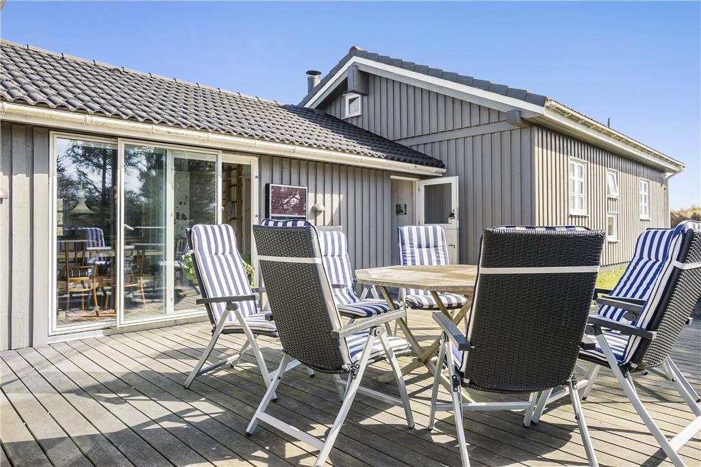 Udearealerne omkring sommerhuset er noget helt særligt. Den store terrasse er perfekt til afslapning og samvær under åben himmel, hvad enten du nyder morgenkaffen, læser en bog eller samles med familien til aftengrill. Fra grunden har du en fantastisk havudsigt, der giver feriedagene et ekstra pift af luksus. Naturgrunden omkring huset inviterer til leg og udforskning, mens de fredelige omgivelser gør det nemt at koble af og nyde roen.