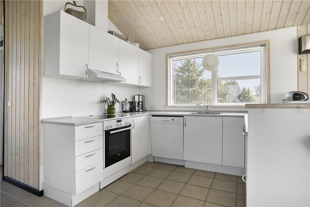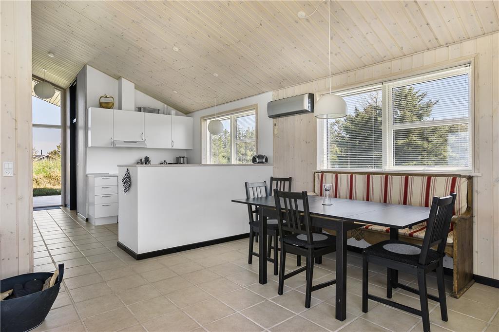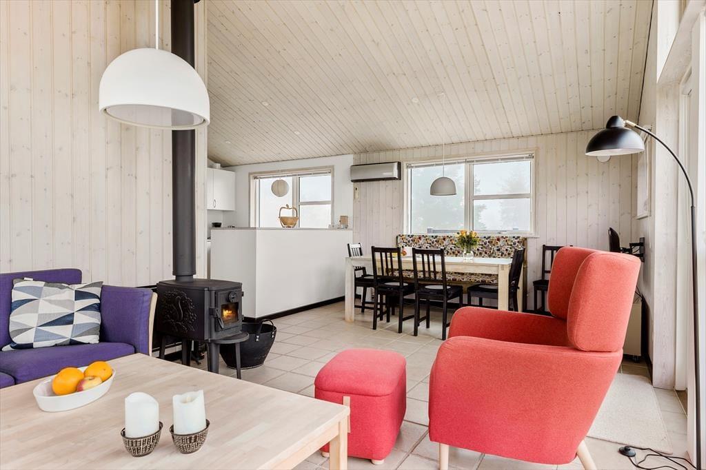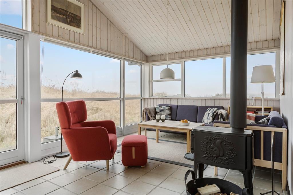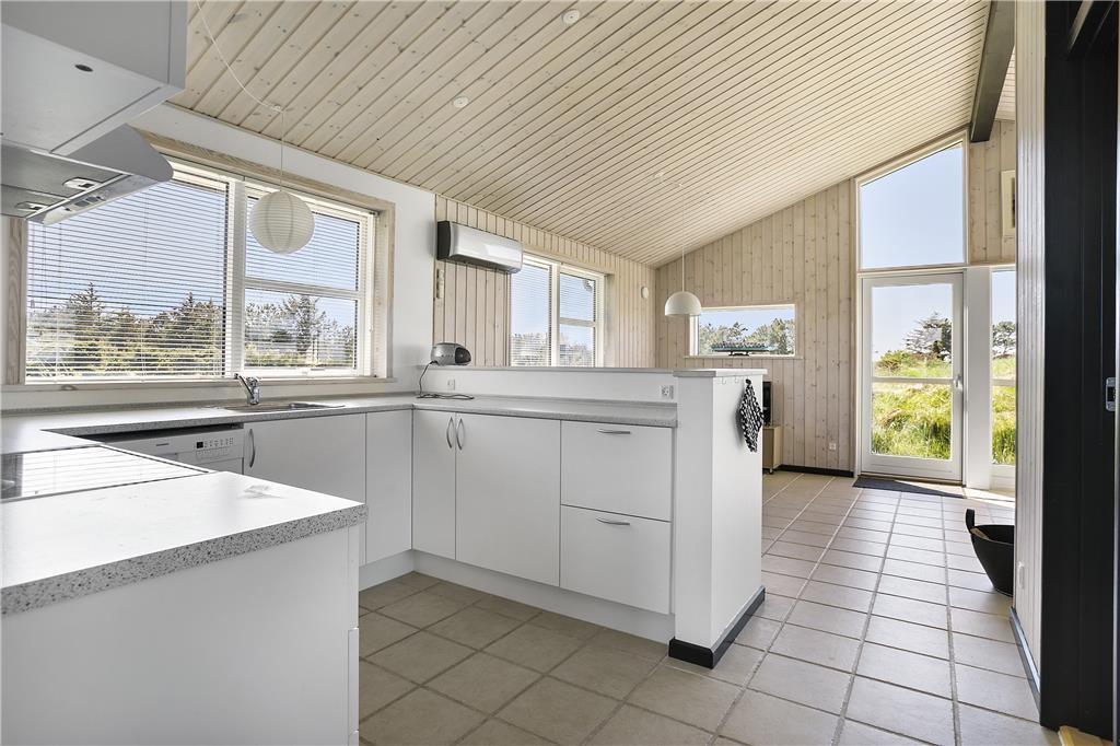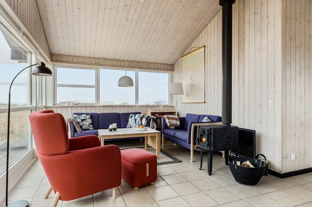 charmerende brændeovn, der kan sprede varme og stemning på kølige aftener. De store vinduer trækker naturen helt tæt på og giver et fantastisk lysindfald, samtidig med at du kan nyde synet af Vesterhavet direkte fra sofaen. Det åbne køkken ligger i forlængelse af stuen, hvilket gør det nemt at tilberede måltider, mens familien hygger sig sammen. De lyse og komfortable soveværelser inviterer til afslappende nætter, hvor du kan vågne op til udsigten