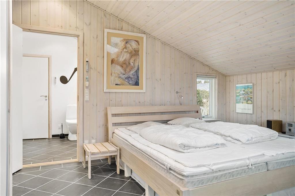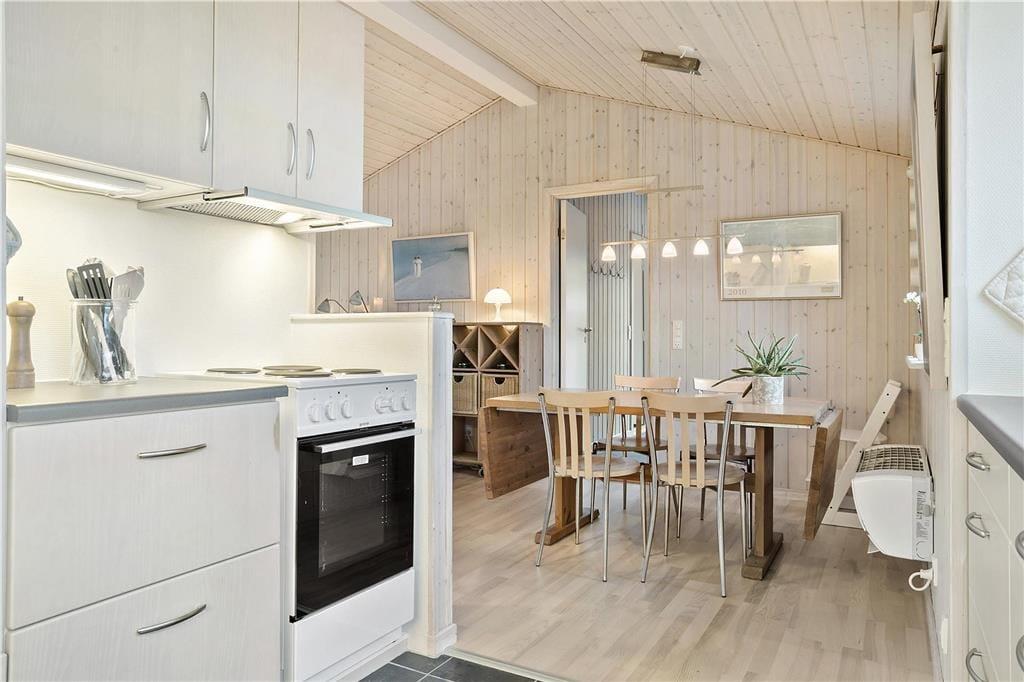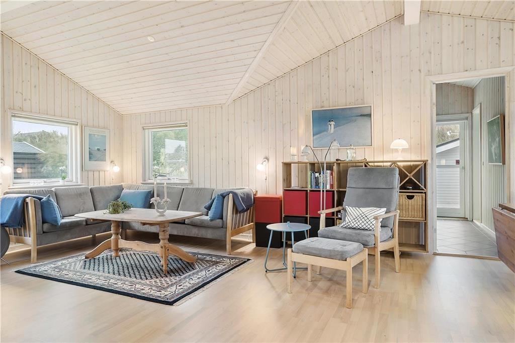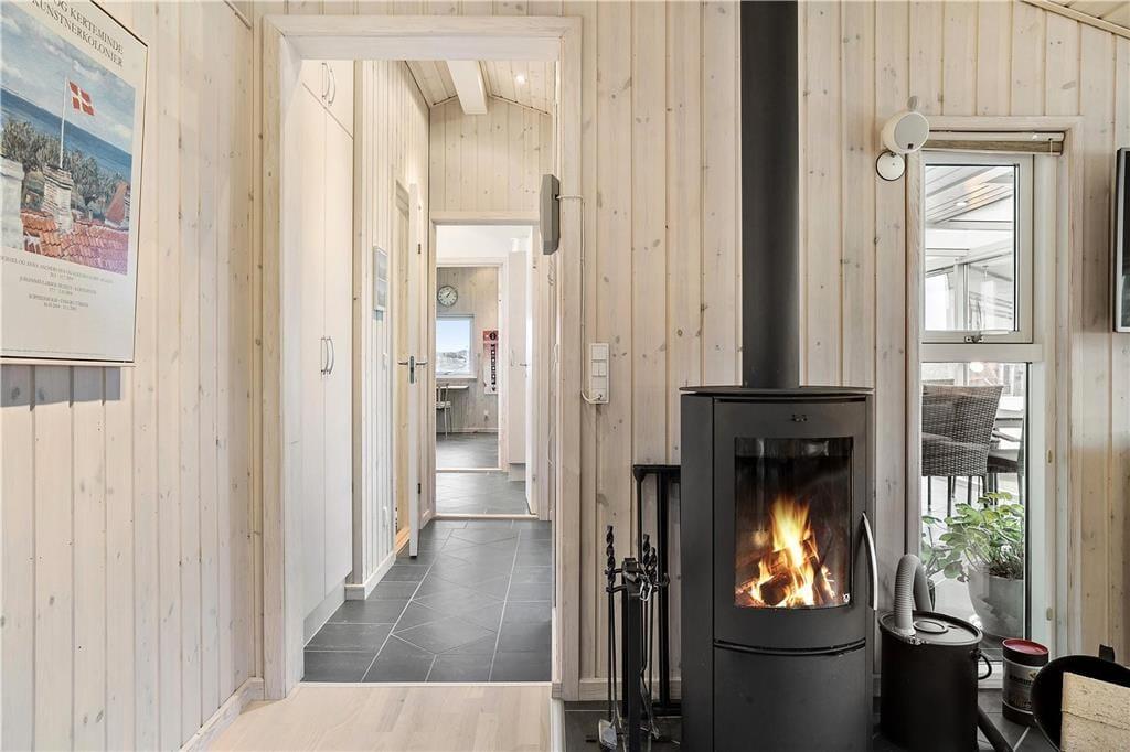 Sommerhuset byder på en lys og indbydende atmosfære, hvor de store vinduespartier i udestuen skaber en forbindelse mellem inde- og udelivet. Udestuen er et skønt opholdssted, uanset om du vil nyde morgenkaffen eller samles til en hyggelig aften med spil og samtaler. Stuen er udstyret med en brændeovn, der spreder varme og hygge på kølige dage, og det åbne køkken gør det nemt at tilberede familiens måltider, mens samtalen flyder. De lyse værelser sørger for en god nats søvn, så du er klar til nye eventyr.