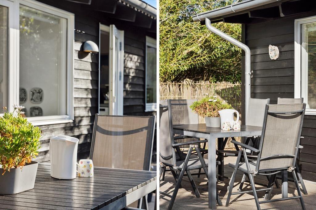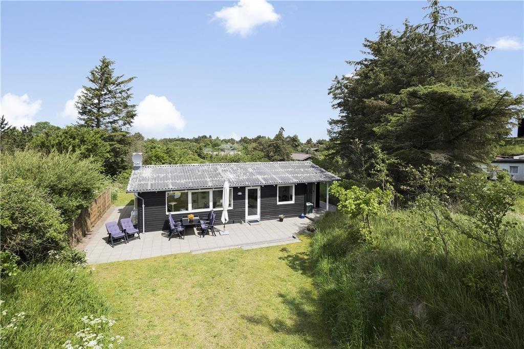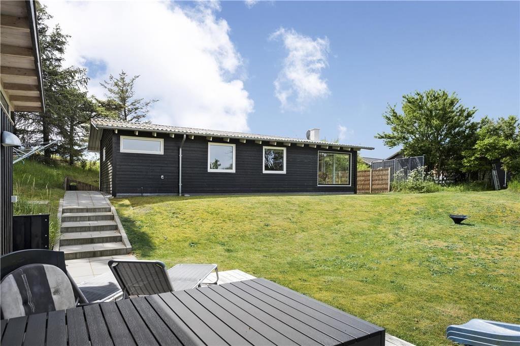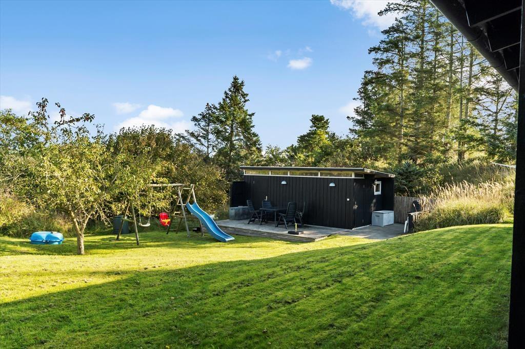 Sommerhuset ligger på en dejlig, lukket grund, hvor der er masser af muligheder for udendørsaktiviteter. På den store græsplæne kan børnene lege frit, spille bold eller bare nyde naturen. Terrassen er perfekt til afslapning i solen eller hyggelige grillaftener med familien. Med husets rolige beliggenhed kan du nyde en ferie i fredelige omgivelser, hvor fuglesang og vinden i træerne sætter stemningen.