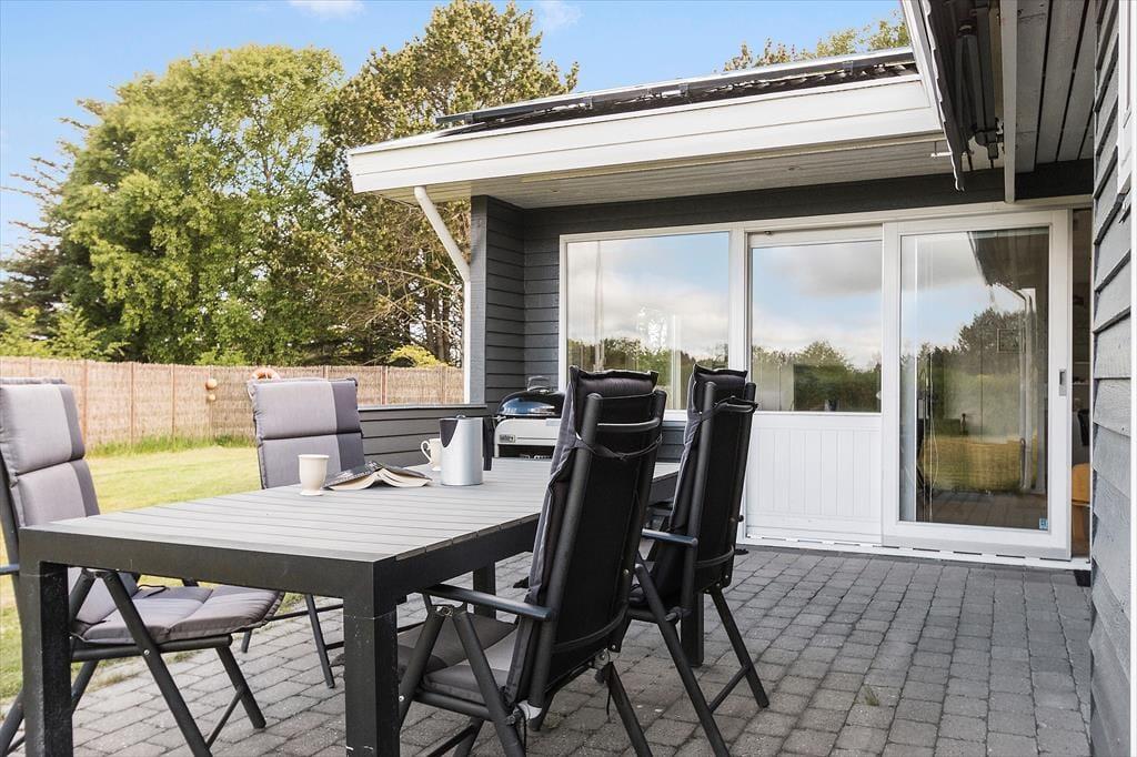 Sommerhuset byder på flere dejlige terrasser, hvor du kan finde solen hele dagen. Start dagen med morgenkaffen på den solrige terrasse, hvor fuglene kvidrer, og du langsomt vænner dig til ferierytmen. Om eftermiddagen kan du nyde den varme sol på en af de andre terrasser, mens du slapper af i liggestolen eller griller aftensmaden på den medfølgende grill. De solrige terrasser er ideelle til både stille stunder med en god bog eller hyggelige måltider under åben himmel. Huset er omringet af en skøn naturgrund, som giver en rolig og privat atmosfære, hvor børnene kan lege, mens de voksne slapper af i solen.