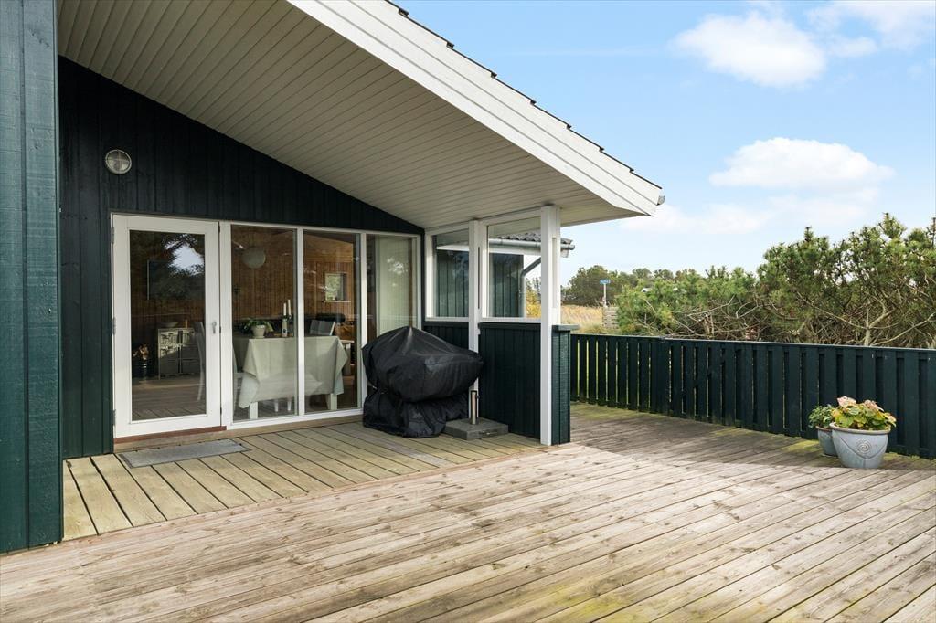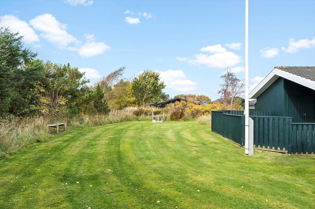 Sommerhuset byder på flere dejlige terrasser, hvor du kan nyde solen fra morgen til aften. Uanset om du vil slappe af med en god bog i en liggestol eller samle familien til et måltid under åben himmel, er der masser af muligheder for at finde det helt rigtige sted at nyde udendørslivet. Terrasserne er omgivet af en dejlig græsplæne, som giver plads til leg og afslapning, og med den friske havluft lige i nærheden kan du næsten mærke den salte luft og høre bølgerne rulle ind mod kysten. Sommerhuset er ideelt for dem, der elsker at være ude – både i solskin og under stjernehimlen.