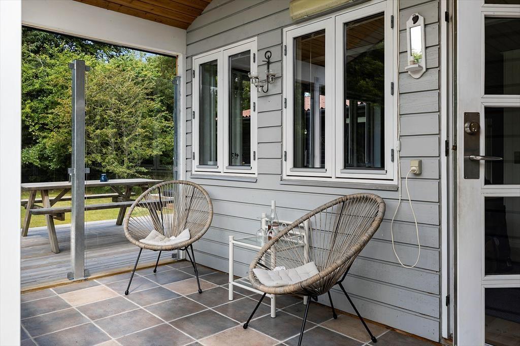 Sommerhusets terrasse er et skønt sted at opholde sig, når solen skinner, og du trænger til at nyde frisk luft og feriestemning. Sæt dig godt til rette i havemøblerne med en kop kaffe om morgenen, eller slap af i liggestolen med solen i ansigtet. Terrassen er ideel til grillaftener, hvor du kan nyde et lækkert måltid under den åbne himmel. Omkring huset finder du smukke, naturskønne omgivelser, hvor du kan gå på opdagelse eller blot nyde stilheden. Med den rolige atmosfære og de skønne rammer er det let at lade feriefreden sænke sig.