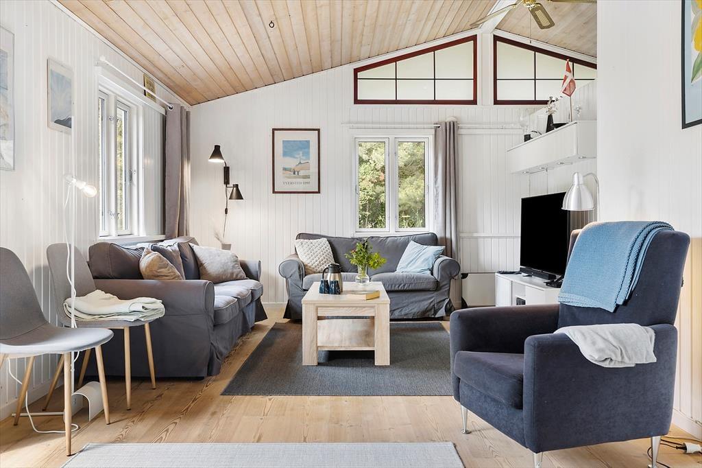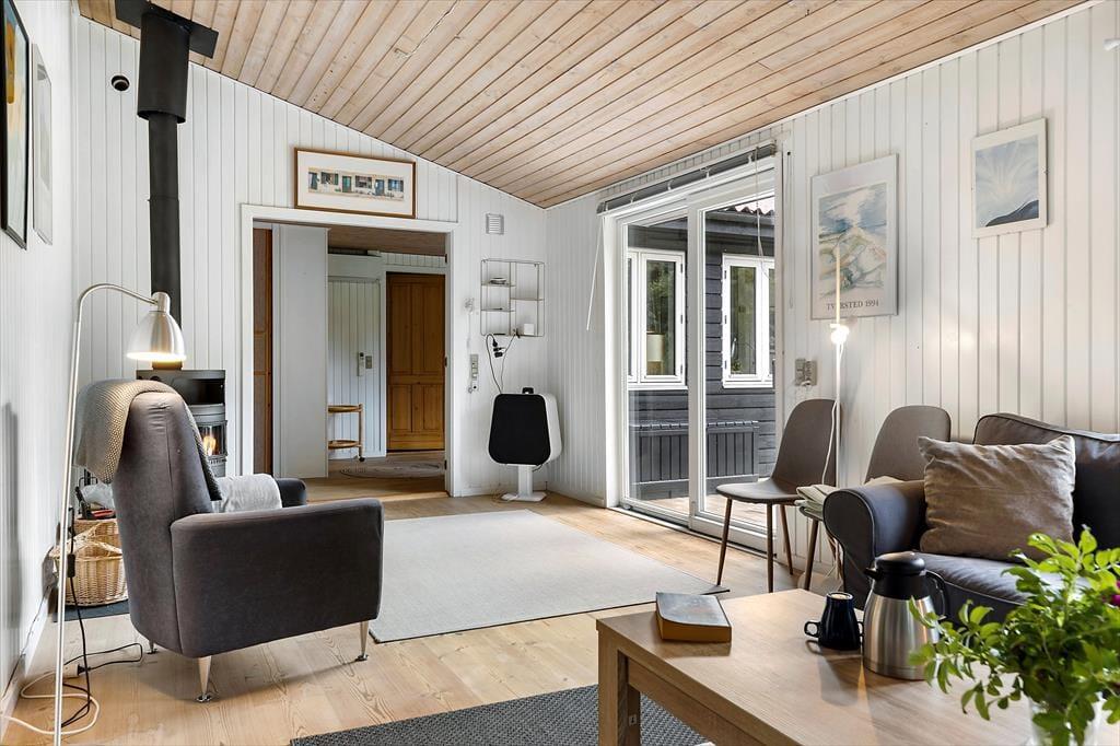Inden døre byder sommerhuset på en indbydende og hyggelig atmosfære. I stuen kan du slå dig ned i sofaen med en god bog, mens flammerne knitrer i brændeovnen og skaber en lun stemning. Efter en dag med oplevelser i naturen kan du forkæle dig selv med en tur i saunaen, hvor varmen løsner op for kroppen og giver en dejlig følelse af velvære. Soveværelserne er indrettet med fokus på komfort, så du kan se frem til en god nats søvn, inden en ny dag venter.