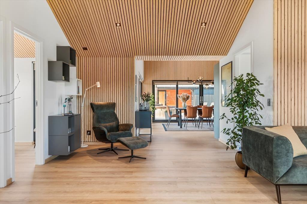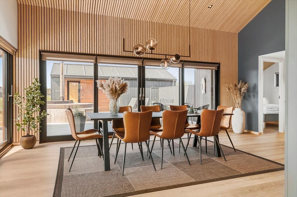 Når du træder ind i dette lyse og indbydende sommerhus, vil du med det samme mærke den behagelige atmosfære. De åbne rum, moderne indretning og store vinduer, der lukker naturen ind, gør det til et skønt sted at slappe af. Stuen er det perfekte sted at samle familien om brændeovnen, mens I nyder en god film eller snakker om dagens eventyr. Det stilrene køkken og de komfortable soveværelser sørger for, at både børn og voksne får en god nats søvn, og du har alle nødvendige faciliteter for en nem og bekvem ferie.