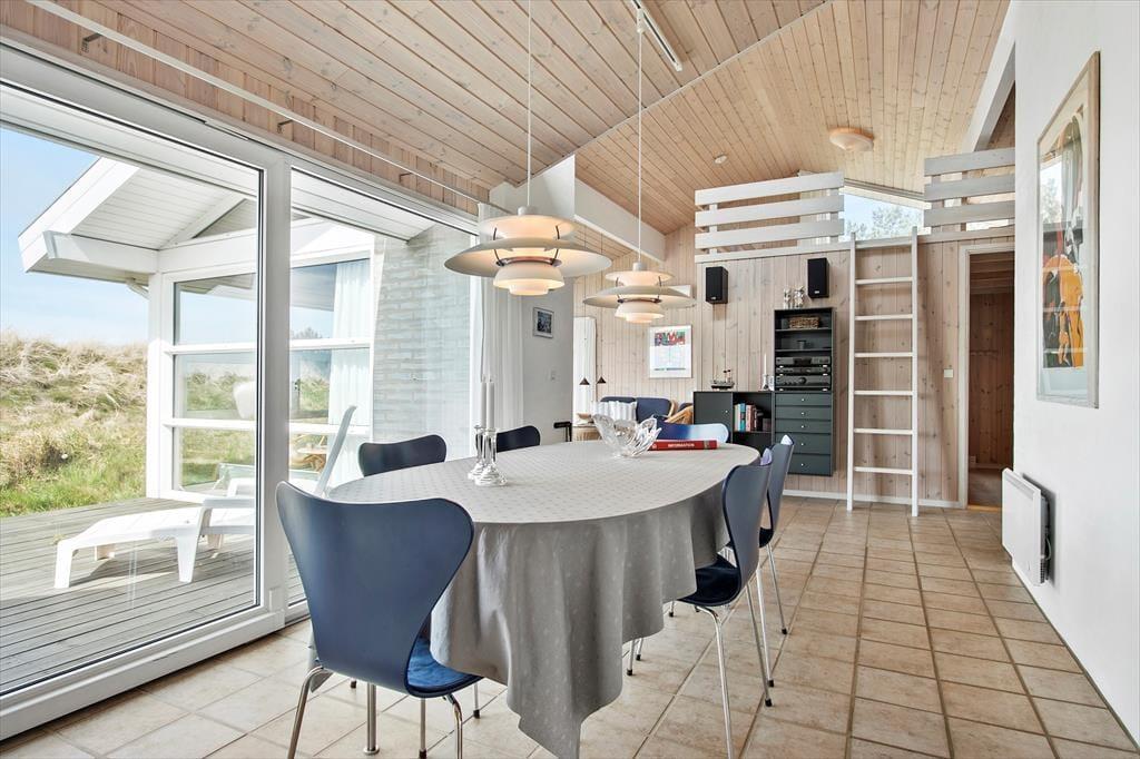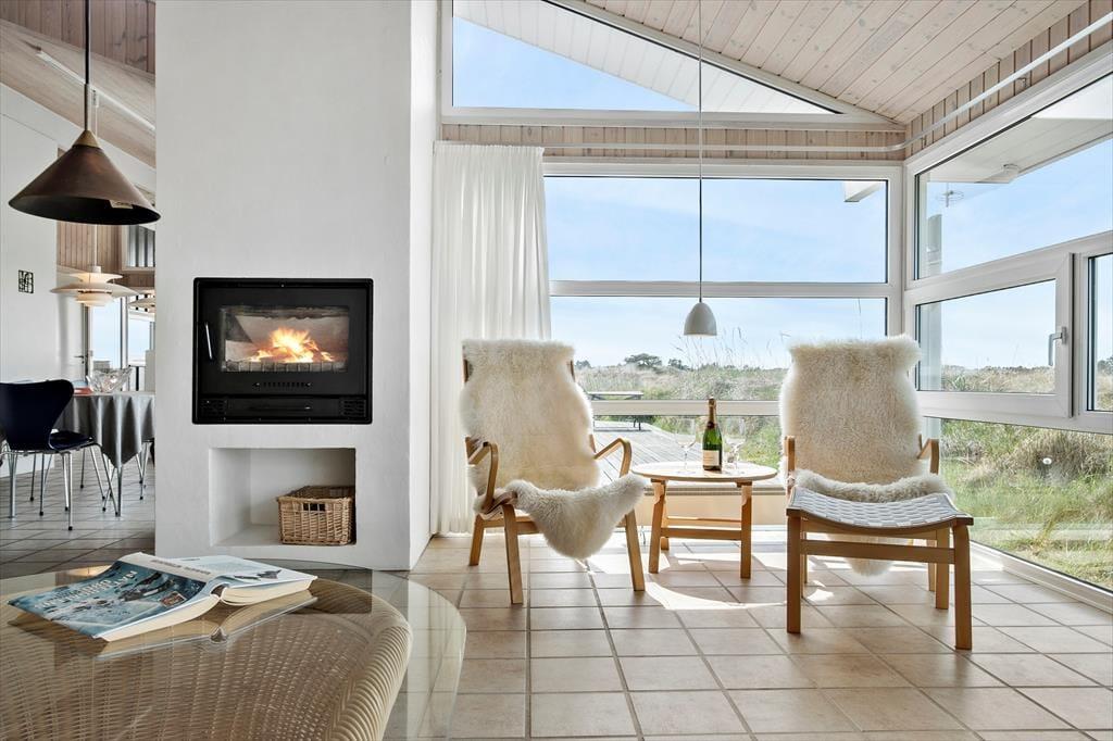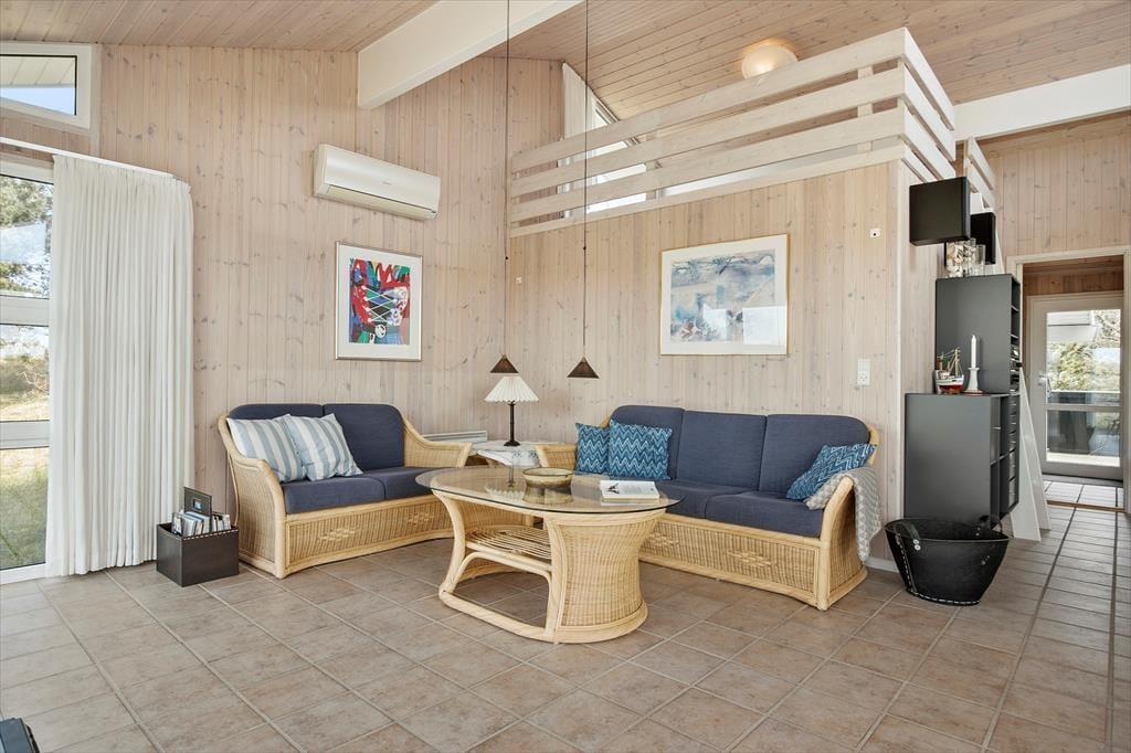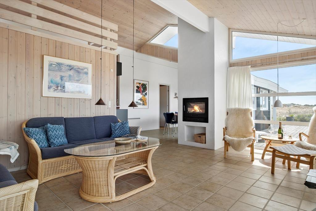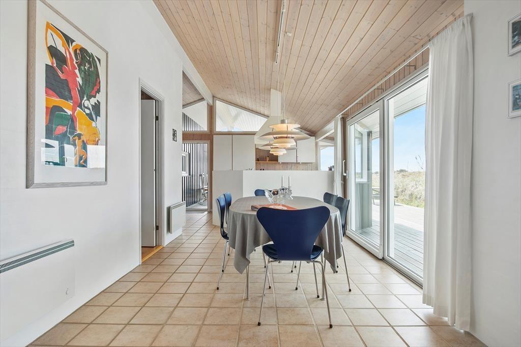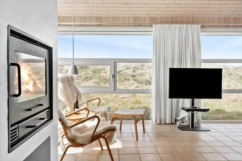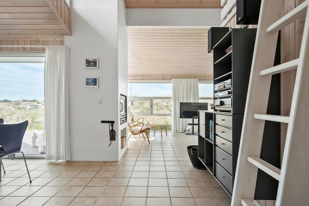 Når du træder indenfor, mødes du af en lys og venlig indretning, der straks får dig til at føle dig hjemme. Den åbne forbindelse mellem køkken og stue gør det nemt at være sammen, uanset om du kokkererer en lækker middag eller slapper af i sofaen med en god bog. De store vinduer lader dagslyset strømme ind og skaber en dejlig forbindelse til de naturskønne omgivelser udenfor. Efter en lang dag ved stranden eller en frisk gåtur i klitterne kan du forkæle dig selv med en tur i saunaen og mærke velværet brede sig i kroppen – en perfekt afslutning på en dejlig feriedag.