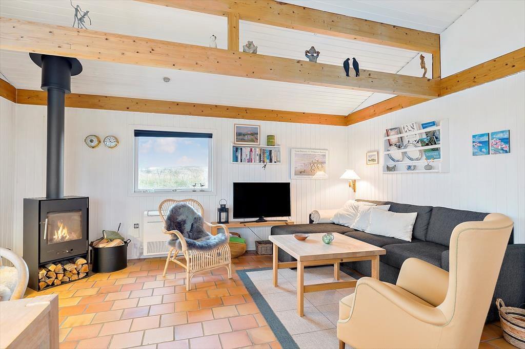 Inde i sommerhuset mødes du af en varm og indbydende atmosfære. Efter en renovering i 2020 fremstår huset moderne og indbydende, samtidig med at det har bevaret sin klassiske sommerhuscharme. Stuen er lys og rummelig med brændeovn, der skaber en hyggelig stemning på kølige dage. Her kan du slå dig ned i sofaen med en god bog, nyde en kop kaffe eller samle familien til en aften med brætspil. Køkkenet er åbent og funktionelt, så du nemt kan lave lækre feriemåltider, mens du stadig er en del af samværet. Huset har en god planløsning, hvor de hyggelige soveværelser giver ro og komfort efter en dag fyldt med ferieoplevelser.