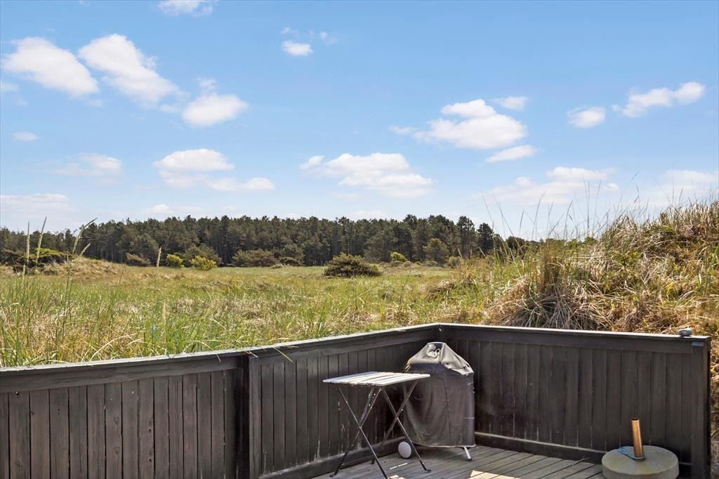 Sommerhuset ligger på en stor naturgrund, hvor du kan nyde udsigten over det smukke landskab. Det skønne terrasseområde indbyder til lange dage i frisk luft, hvor du kan starte morgenen med en kop kaffe, mens fuglene kvidrer i baggrunden. Senere kan du slå dig ned i en liggestol med en god bog eller samles omkring grillen til en hyggelig middag under åben himmel. Naturgrunden giver masser af plads til leg og aktiviteter, og med skoven som nabo har du rig mulighed for at tage på opdagelse i den nordjyske natur.