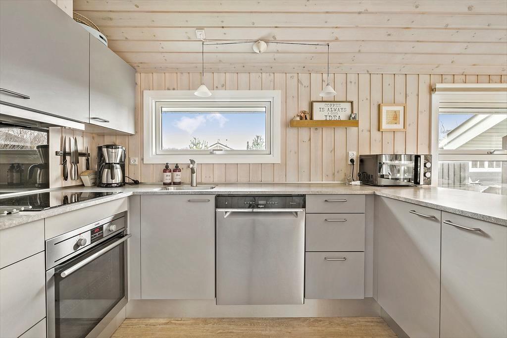 Udendørs inviterer en dejlig have med græsplæne til både boldspil og afslappede stunder under åben himmel. Den delvist overdækkede terrasse giver dig mulighed for at nyde livet ude – uanset vejret. Start dagen med morgenkaffe og fuglefløjt, og slut den af med grillmad og solnedgang. Haven er et skønt sted at være hele dagen, uanset om du vil læse i skyggen, lege med børnene eller lade hunden nyde friheden i de trygge omgivelser. Der er både solrige og skyggefulde kroge, så du altid kan finde et sted, der passer til stemningen og temperaturen. Det er et perfekt sted at finde ro og nyde den særlige stemning, som sommerhuslivet i Tversted er kendt for.