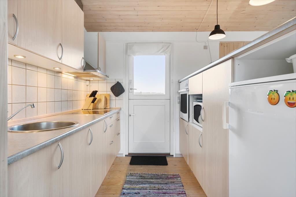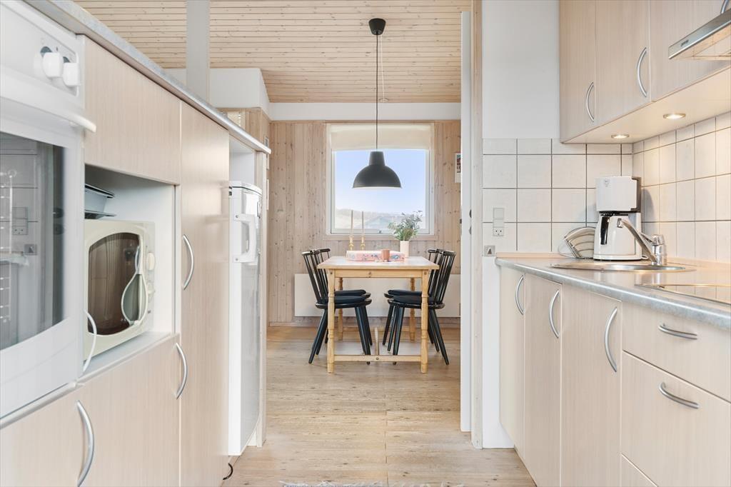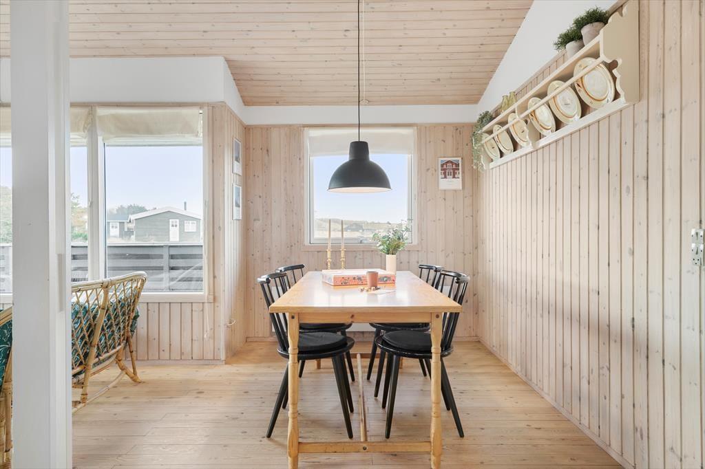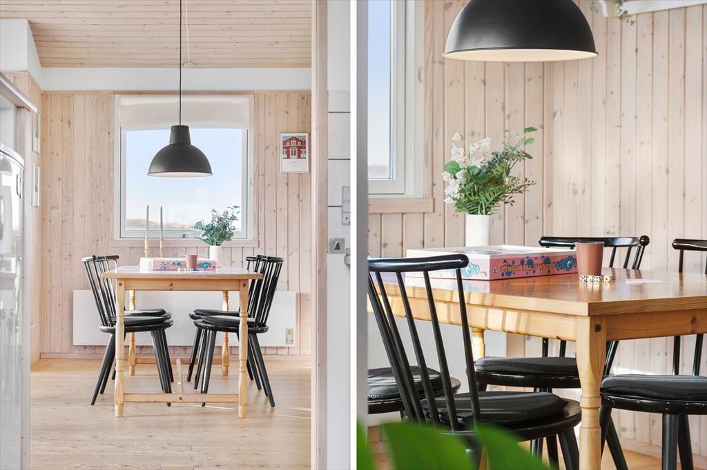Med to soveværelser og et badeværelse passer planløsningen fint til fire personer, og hvis nogle i selskabet foretrækker at sove i det tilhørende anneks, er der mulighed for det. I løbet af dagen kan feriehyggen udspille sig i stuen, der har loft til kip, lys træbeklædning på væggene og udsigt til det naturskønne sommerhusområde. Hvis du elsker at lave mad, kan du se frem til at trylle med råvarerne i det nyrenoverede køkken, der ligger bag en høj halvmur, men i åben forbindelse med stuen. Spisebordet står i forlængelse af køkkenet, og her kan I nemt få timerne til at gå med at spise god mad og spille brætspil – med mindre familien altså foretrækker at slappe af i sofaen eller i de hyggelige kurvemøbler.
