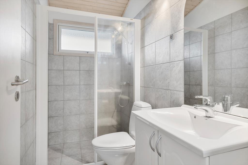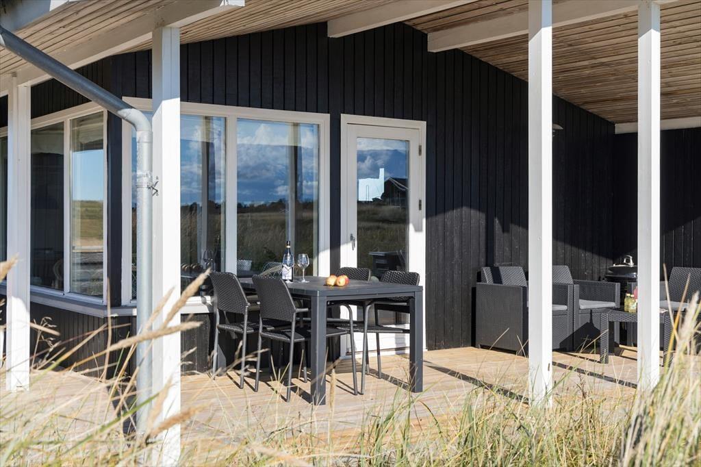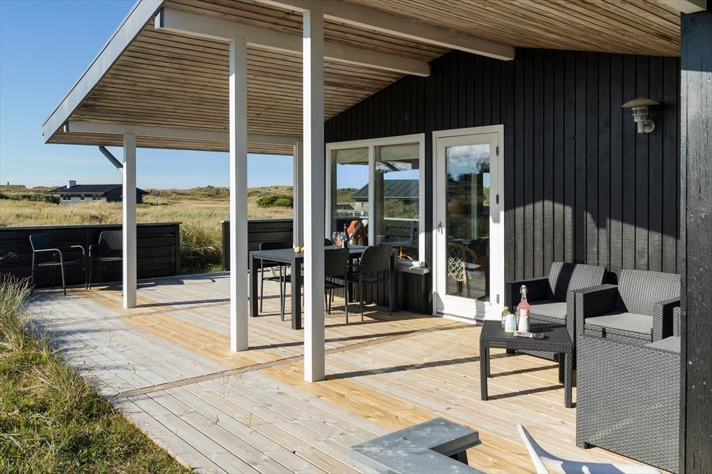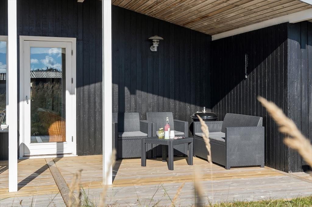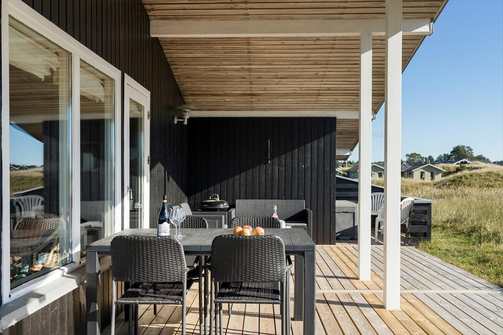 Drømmer du mest af alt om at sidde komfortabelt med en varm kop kaffe eller en kølig drink under den åbne himmel? Så vil du garanteret blive glad for de to dejlige terrasser, der smyger sig rundt om huset. Den sydvestvendte terrasse er delvist overdækket, mens den østvendte er helt åben, og uanset hvor du slår dig ned, kan du føle dig i tråd med områdets rolige og tilbagelænede atmosfære. Naturgrunden er stor, og bortset fra et område nær huset, hvor bevoksningen holdes helt lav, smelter husets udearealer helt sammen med de naturskønne omgivelser.