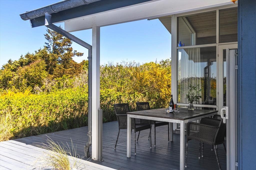 Inden døre byder sommerhuset på en lys og behagelig atmosfære, hvor store vinduespartier lukker dagslyset ind og giver en skøn fornemmelse af at være tæt på naturen – også når du opholder dig indenfor. Indretningen er enkel og indbydende med fokus på hygge og funktionalitet, så det er let at føle sig hjemme fra første stund. Stuen bliver hurtigt familiens naturlige samlingspunkt, og her kan du nyde lange feriemorgener med kaffe i koppen eller rolige aftener, hvor brændeovnen knitrer og spreder varme og stemning på køligere dage. Efter en lang dag med strandture eller vandreture i klitplantagen kan du forkæle dig selv med en tur i saunaen, der giver den helt særlige wellness-fornemmelse, som hører ferien til. De to toiletter er en ekstra komfortabel detalje, der gør hverdagen mere afslappet, når I er flere samlet. Og med hund tilladt kan hele familien – også den firbenede – være med til at skabe ferieminder.