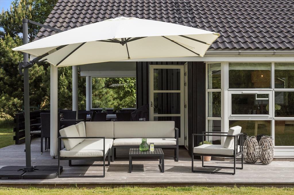 Ude i det fri får I de bedste forudsætninger for at nyde det gode vejr. Hvis du vil have en frisk start på morgenen, kan du skylle dig under udebruseren til lyden af fuglesang og med tanke på den duftende kop kaffe, du om lidt kan indtage på terrassen. Rundt om sommerhuset venter der flere dejlige terrasseområder – inklusiv en delvist overdækkede siddeplads mod vest og en godt afskærmet østterrasse med udespa. Græsplænen er pæn og velholdt, og der er carport til bilen, og endelig kan hunden få sin helt egen oase i form af en indhegnet gård, hvor den kan snuse rundt eller ligge i skyggen af træerne.