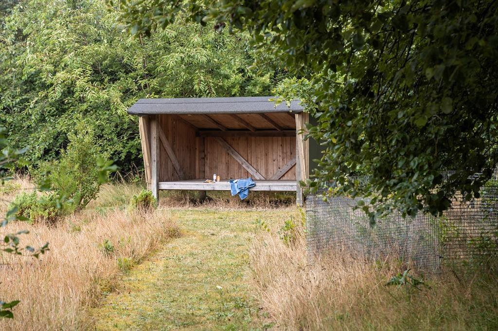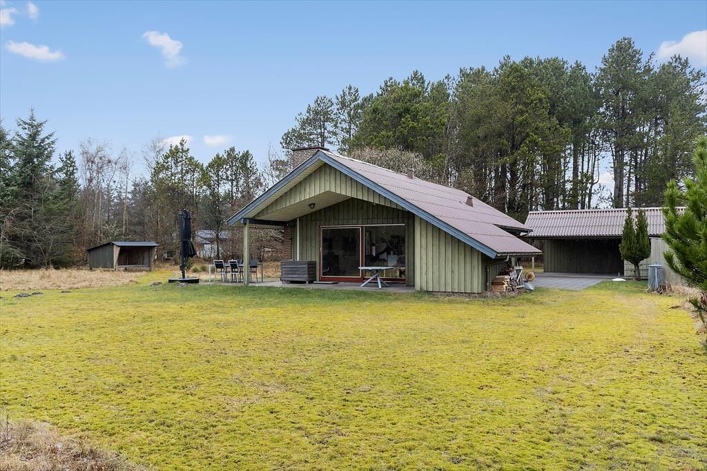 Udearealerne er en sand perle. Sommerhuset ligger på en stor, dejlig naturgrund, der giver masser af plads til leg, afslapning og hyggelige stunder under \åben himmel. Det hyggelige bålsted er omkranset af læ, så du kan samles med familien omkring flammerne og riste skumfiduser, mens solen går ned. Grunden indbyder til afslapning i liggestolen, mens fuglene kvidrer i baggrunden, og hvis du har lyst til at udforske omgivelserne, kan du tage på en cykeltur eller vandretur i det smukke landskab. Sommerhuset har desuden en praktisk carport, så bilen kan holde i skygge på varme sommerdage.