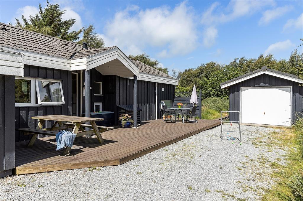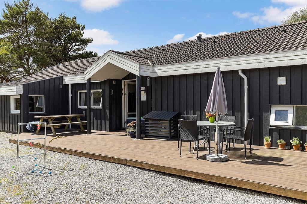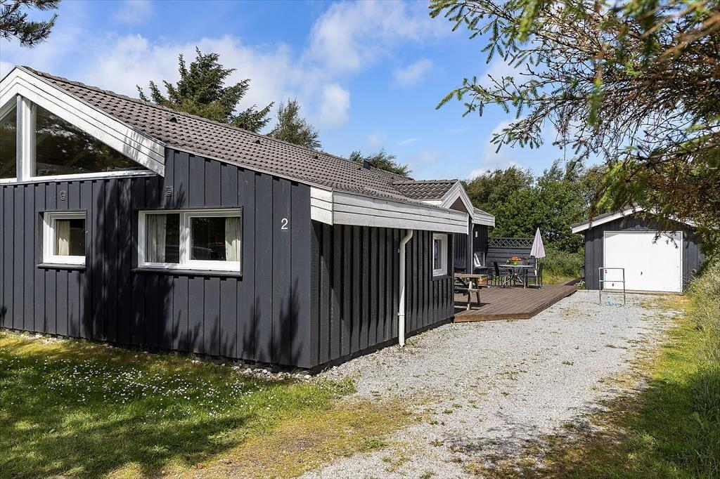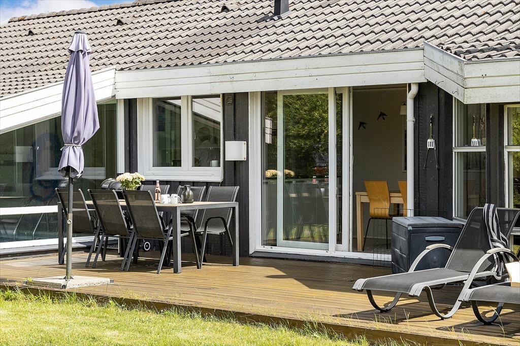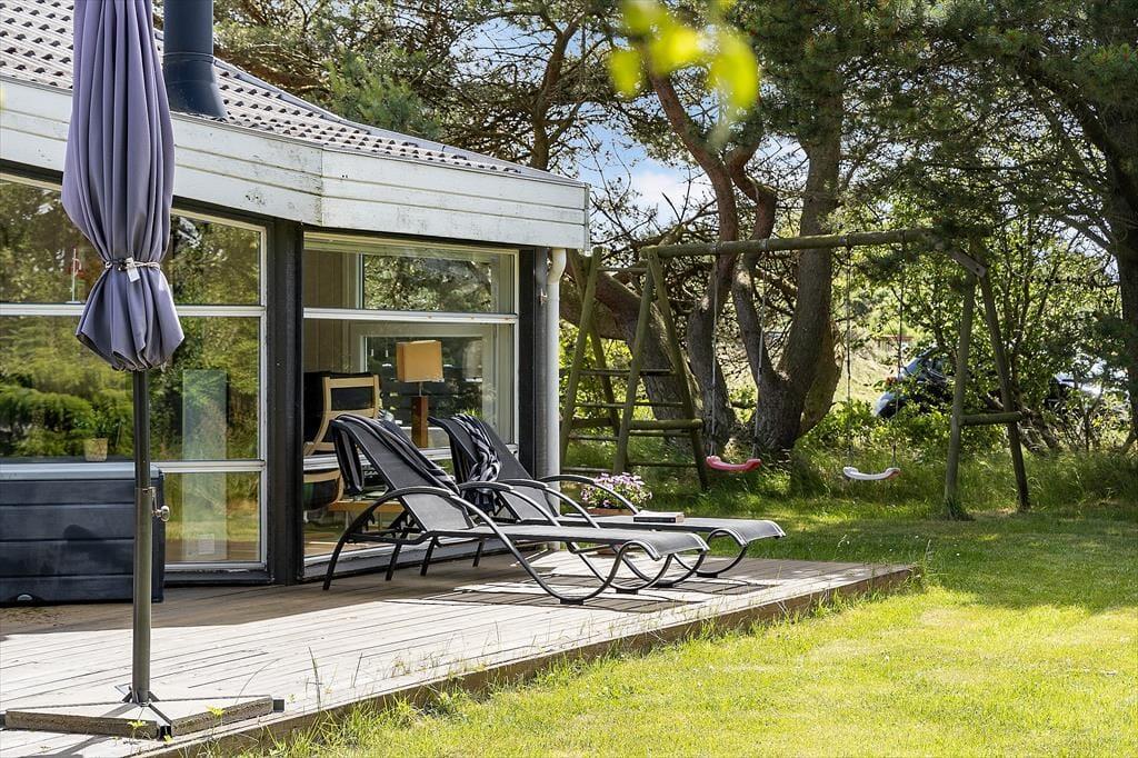 Udendørs kan du virkelig mærke, at sommerhuset er tænkt som et sted, hvor ferielivet skal nydes i fulde drag. Grunden er både privat og solrig, og takket være de mange lækroge kan du finde et godt sted at slå dig ned, uanset om solen skinner fra øst eller vest. Der er terrasser på begge sider af huset, så du kan flytte med solen hele dagen og slutte af med en lang grillaften under åben himmel. Den frodige beplantning og de mange lægivende træer skaber en rolig og hyggelig atmosfære, hvor fuglekvidder og duften af gran bliver det eneste, der forstyrrer din fred. Her kan du læne dig tilbage i liggestolen, tage en god bog med udenfor eller bare nyde, at hele familien samles til fælles måltider og små snakke i solskinnet. Det er sådan, ferieminder bliver skabt – lidt efter lidt, i selskab med dem, du holder af.