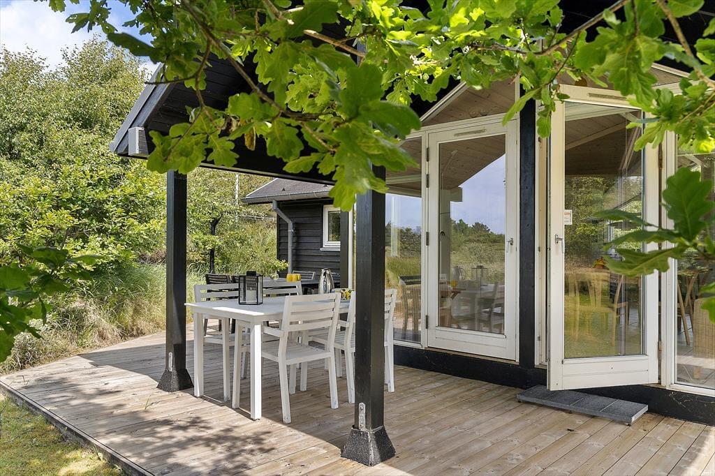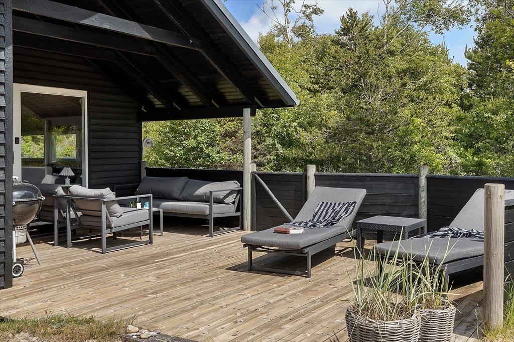 Udenfor venter et herligt frirum på dig og din familie. Sommerhuset ligger på en flot grund med god læ, hvilket gør terrassen til det perfekte sted at nyde både morgenkaffen og de lune aftener. Her kan du sidde med en bog, læne dig tilbage i liggestolen eller tænde op i grillen, mens du følger solens gang hen over himlen. Grunden indbyder til leg og ophold i det fri – og takket være den naturlige afskærmning får du en fin kombination af privatliv og nærvær med naturen. Det er ikke svært at forestille sig en feriedag, hvor timerne bare flyver afsted med solbadning, spil i haven og lange frokoster i det fri – måske akkompagneret af fuglekvidder og duften af frisklavet mad fra grillen.