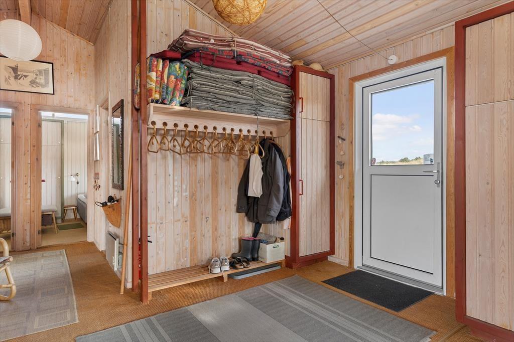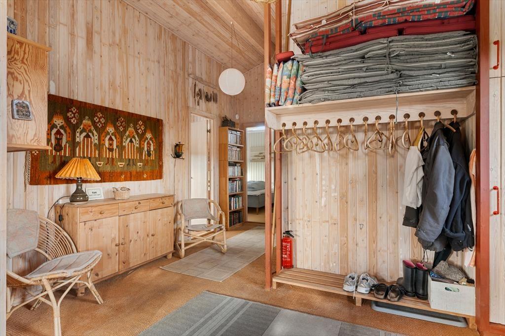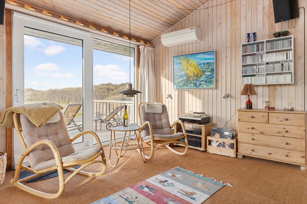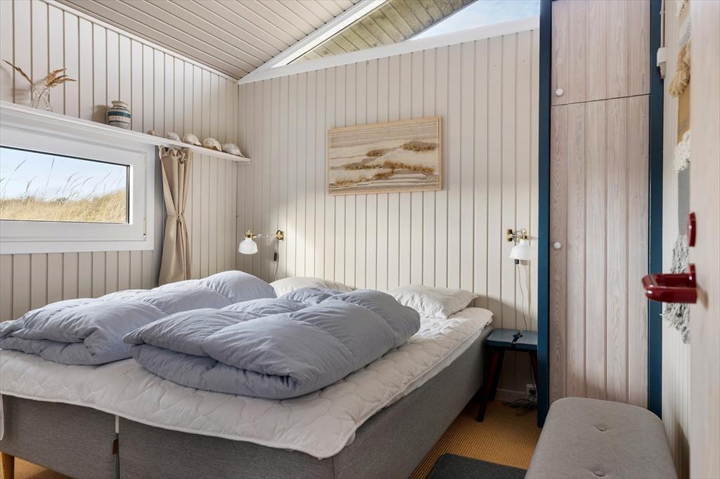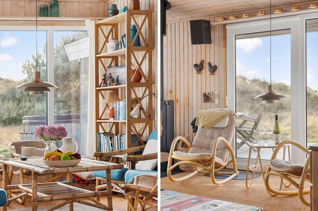 Indenfor byder huset på en varm og indbydende atmosfære, hvor naturens farver og materialer skaber en afslappet stemning. Det lyse køkken-alrum er husets naturlige samlingspunkt, hvor I kan nyde måltiderne sammen, spille spil og hygge jer foran den knitrende brændeovn på kølige dage. Køkkenet ligger åbent mod stuen, så man nemt kan følge med i samtalen, mens maden tilberedes. I opholdsstuen indbyder sofaerne til rolige aftener med film, og der er et godt udvalg af DVD’er til rådighed. De fire soveværelser giver alle mulighed for ro og privatliv efter en dag fyldt med oplevelser. Tre af værelserne er indrettet med komfortable senge, mens det fjerde har to køjesenge – et hit blandt børnene, der også har adgang til masser af legetøj. Her er plads til både fælles hygge og rolige stunder – præcis som en ferie i Tversted bør være.