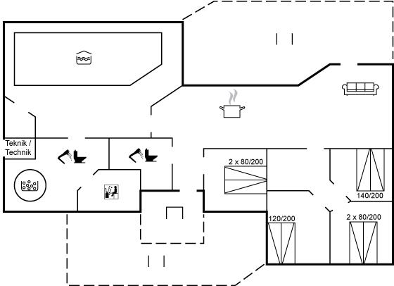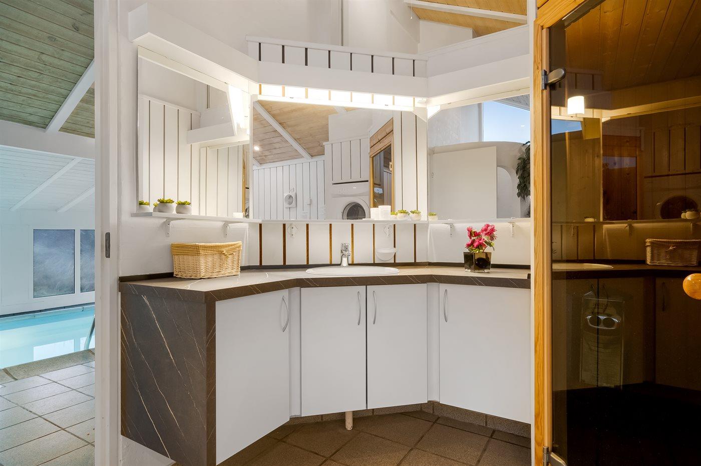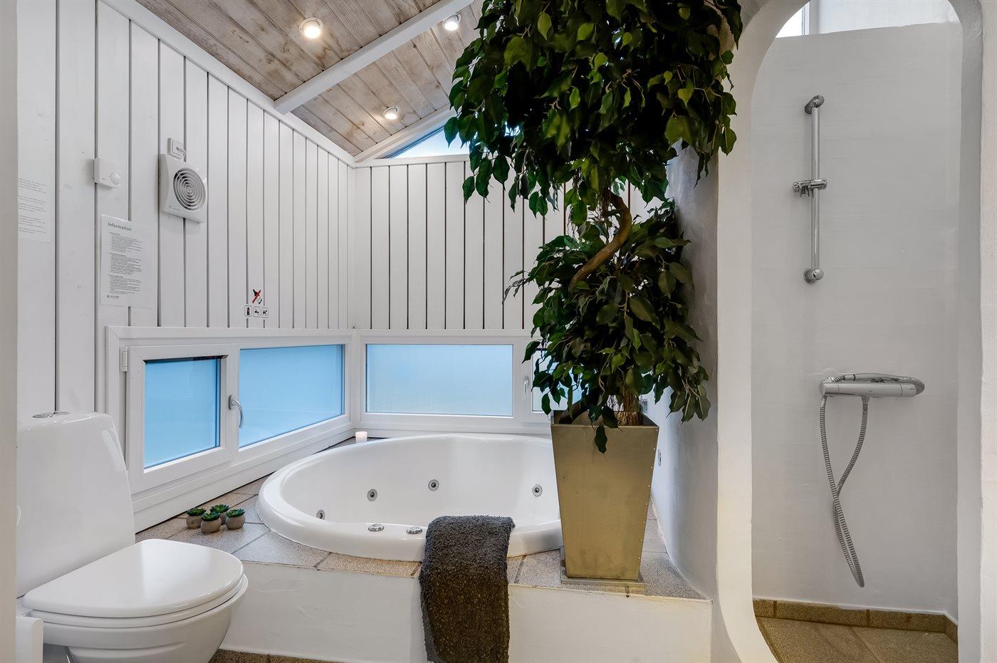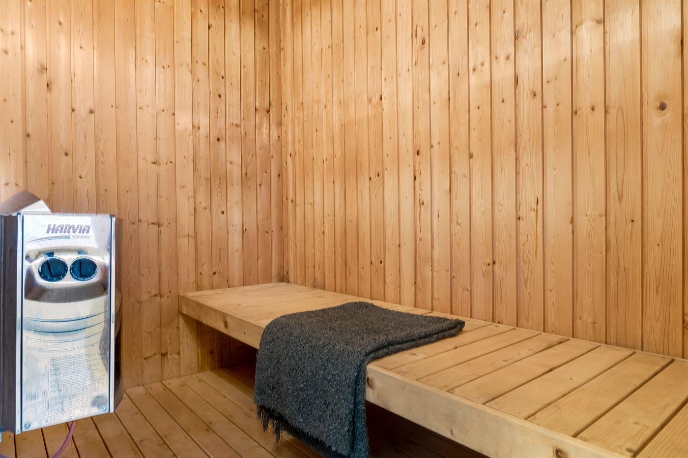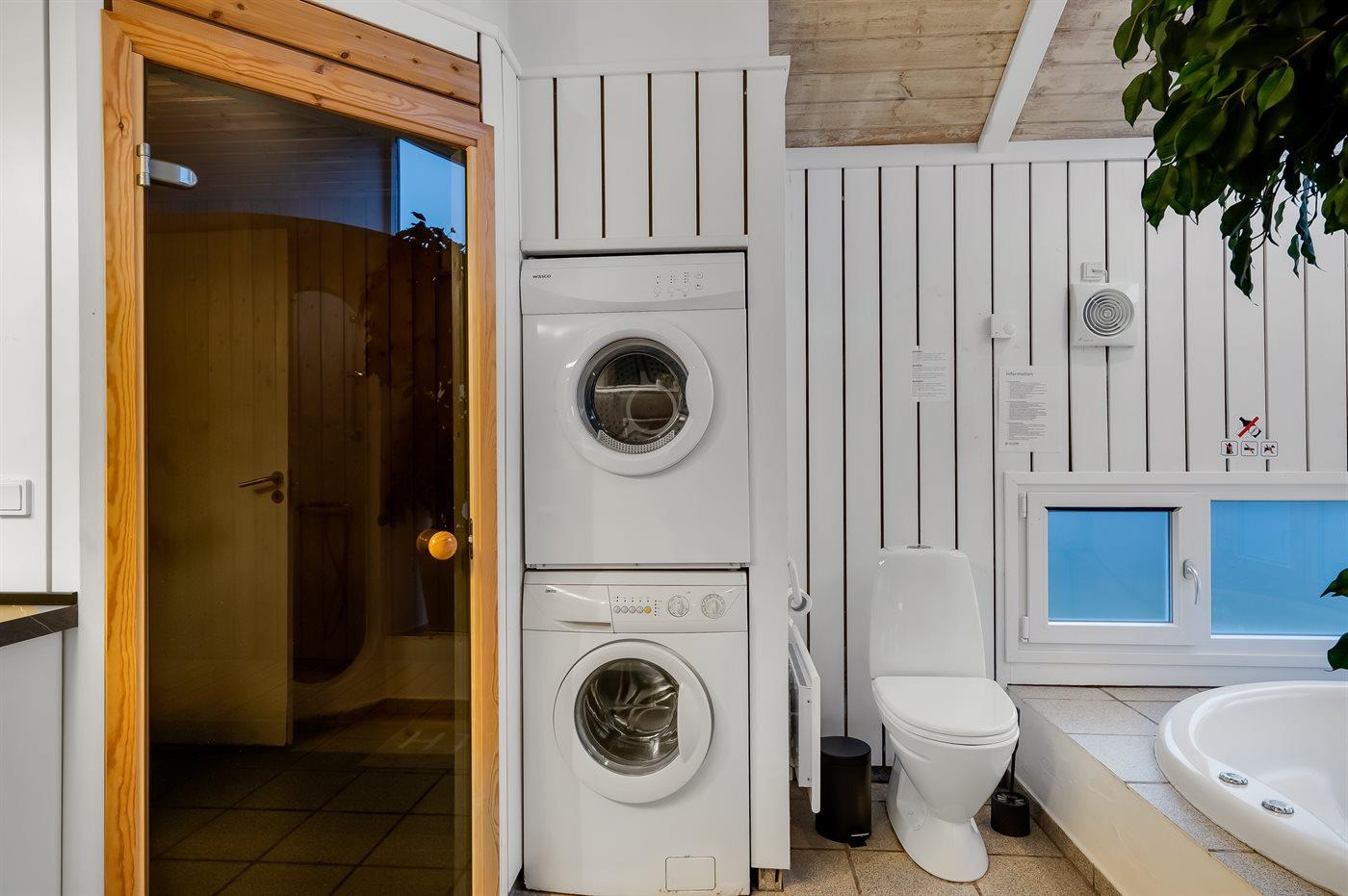 Der er 2 badeværelser med bruseniche og 2 toiletter, heraf 1 gæstetoilet. Der er gulvvarme på 2 badeværelser. Der er gulvvarme på gæstetoilettet. I saunaen er der mulighed for afslapning.