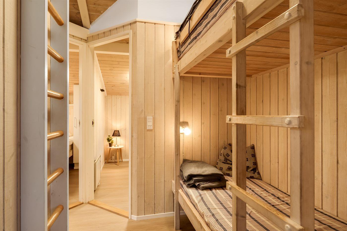 Der er i alt 4 soveværelser. Sovepladserne fordeler sig på: 8 sovepladser i dobbeltsenge. 2 sovepladser på madrasser. 2 af disse sovepladser befinder sig på husets hems. Derudover er der 1 stk. barneseng.