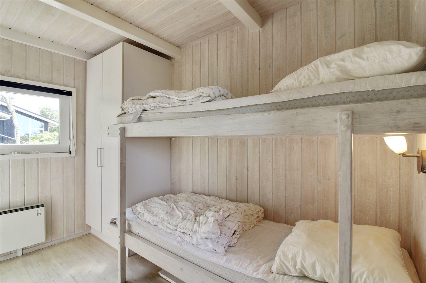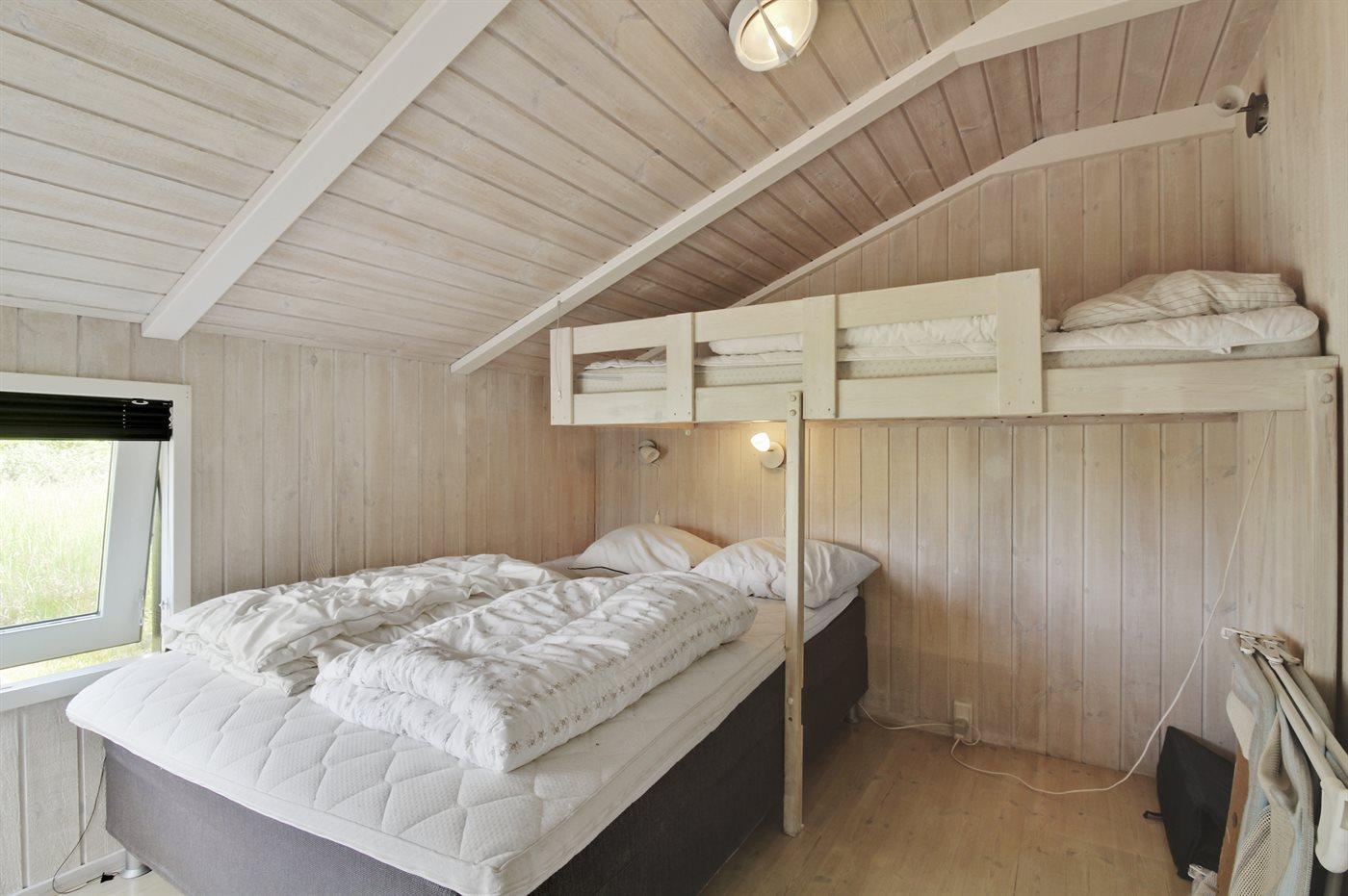 Huset er indrettet med 4 soveværelser og sovepladserne fordeler sig på 6 sovepladser i dobbeltsenge og 3 sovepladser i køjer. Derudover findes der 1 stk. barneseng samt 1 stk. barnestol.