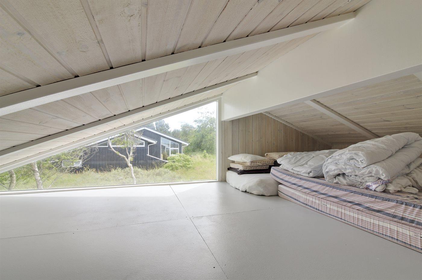 Fra den skønne hems er der et godt kig over huset og poolområdet. På hemsen befinder der sig 3 madrasser.