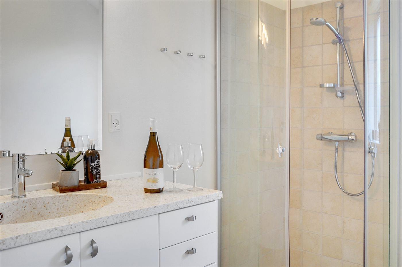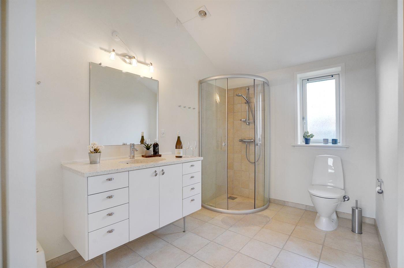 Der er 1 badeværelse med bruseniche og 1 toilet.. Der er gulvvarme på 1 badeværelse.