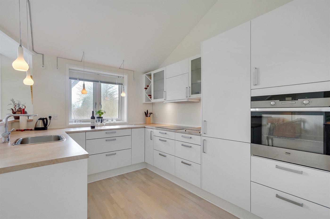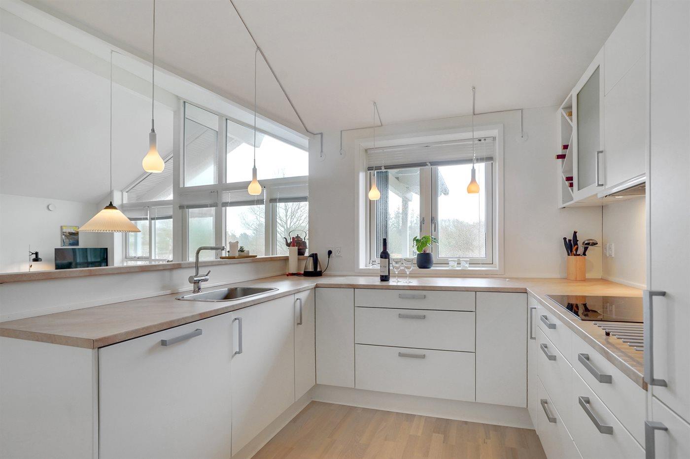 Køkkenet er udstyret med 1 køleskab. Der er 4 induktionskogeplader, varmluftovn, mikrobølgeovn samt opvaskemaskine.