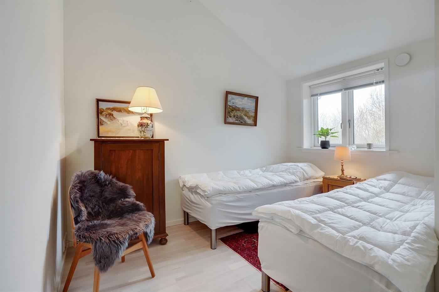 Der er i alt 3 soveværelser. Sovepladserne fordeler sig på: 6 sovepladser i enkeltsenge. Derudover er der 1 stk. barneseng.