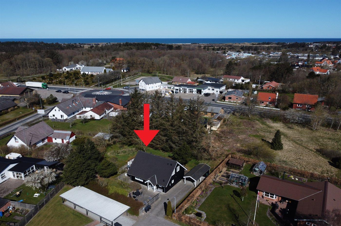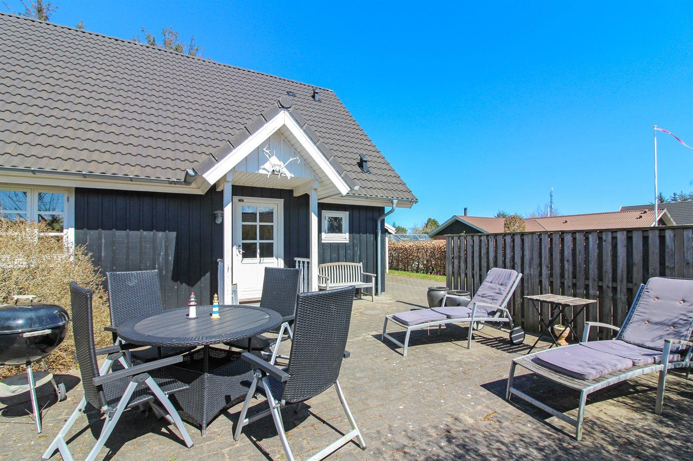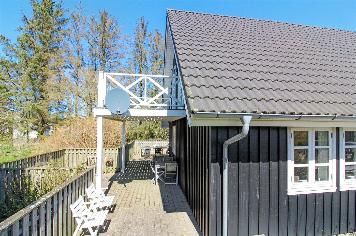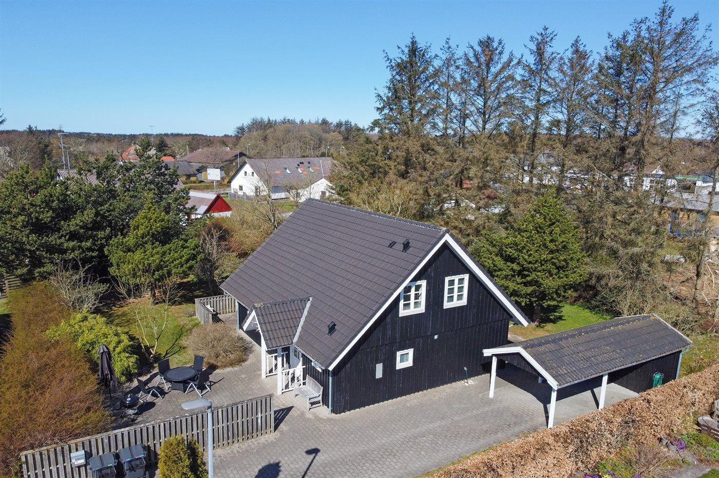 Ferieboligen er beliggende på en 1075 m² stor naturgrund. Der er 1800 m til havet. Nærmeste forretning er beliggende i en afstand af 500 m. Der er en golfbane i en afstand af 9000 m. Til ferieboligen hører 40 m² terrasseareal. Desuden er der 10 m² overdækket terrasse. Udgang til altan. Sandkasse. Grill til rådighed. Der er carport til rådighed. Parkering ved ferieboligen.