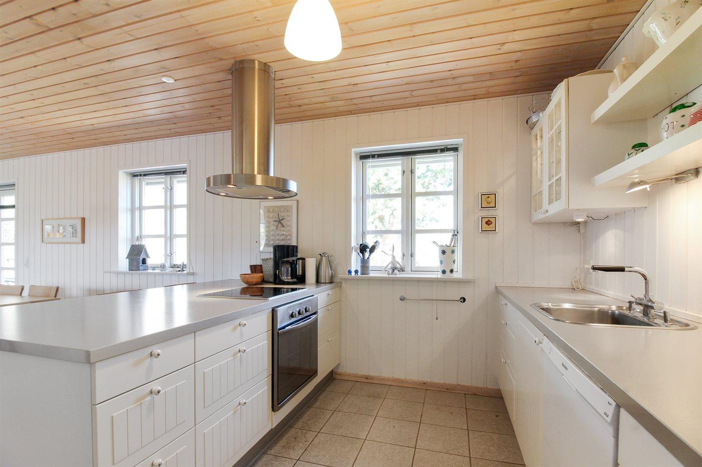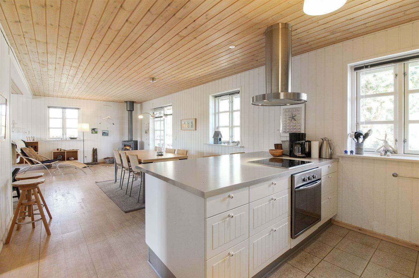 Køkkenet er udstyret med 1 køleskab. Der er 4 induktionskogeplader, varmluftovn samt opvaskemaskine.