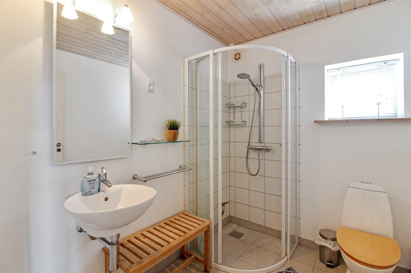 Der er 1 badeværelse med bruseniche og 2 toiletter, heraf 1 gæstetoilet.