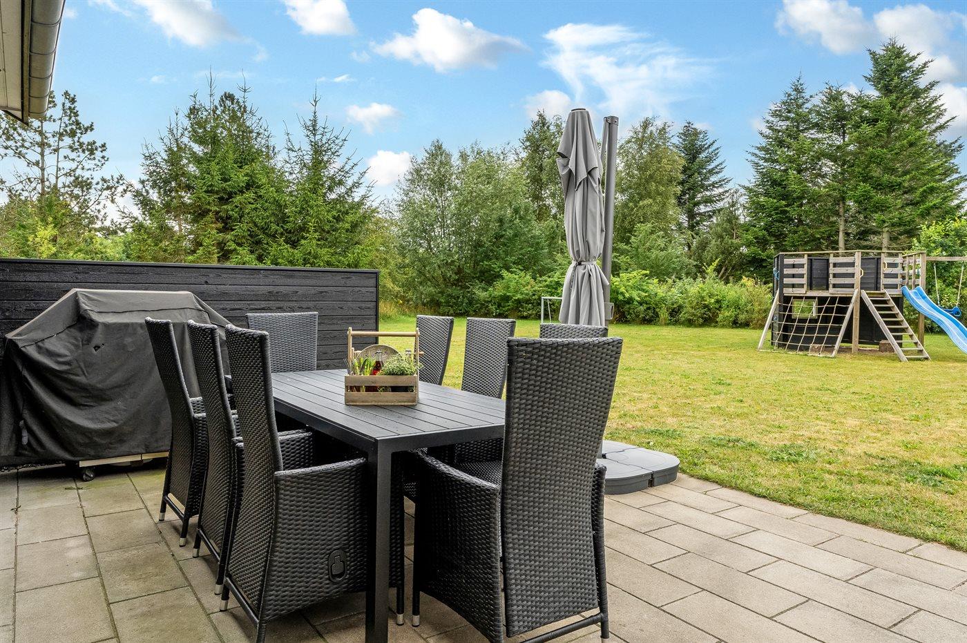 Ferieboligen er beliggende på en 2520 m² stor naturgrund. Der er 1200 m til havet. Nærmeste forretning er beliggende i en afstand af 700 m. Til ferieboligen hører åbent terrasseareal. Ligeledes er der adgang til udestue. Gynge. Sandkasse. Legetårn. Rutchebane. Fodboldmål. Bålsted. Udendørs bruser. Grill til rådighed. Parkering ved ferieboligen.