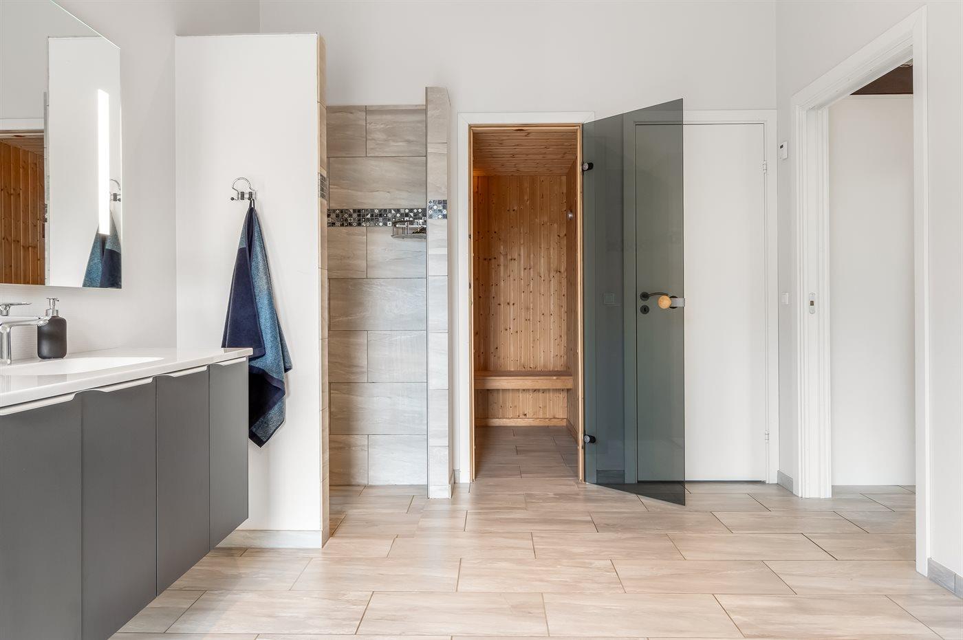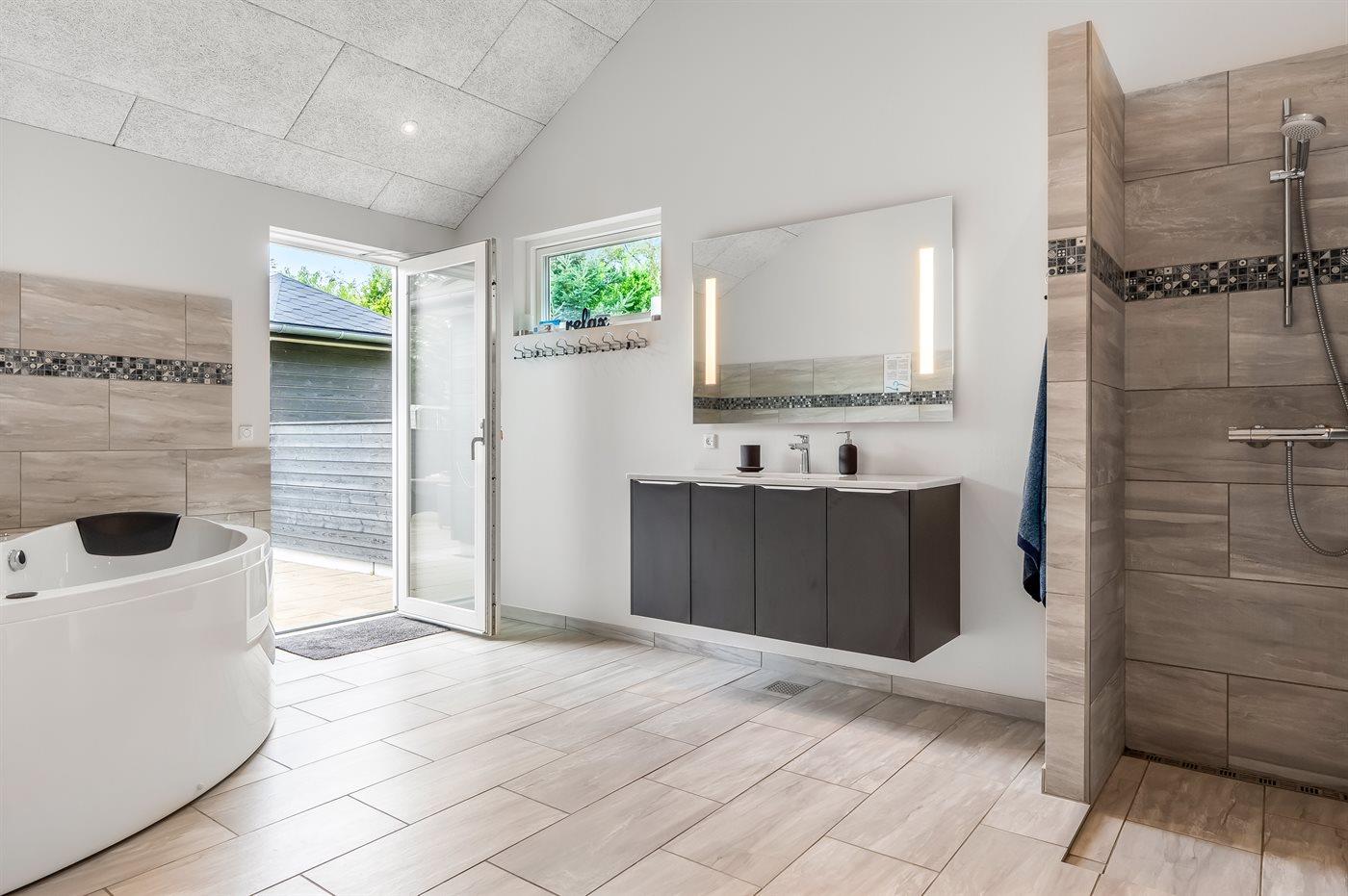 Der er 2 badeværelser med bruseniche og 2 toiletter. Der er gulvvarme på 2 badeværelser. I saunaen er der mulighed for afslapning.